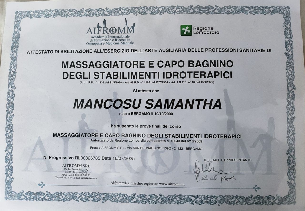 Sono una massoterapista e il mio obiettivo è aiutare ogni persona a ritrovare benessere ed equilibrio attraverso trattamenti mirati.