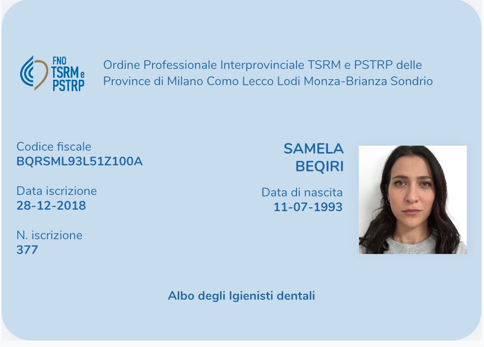 Dottoressa di igiene orale super calma e professionale. Fin dal primo momento mi ha messo completamente a mio agio, dimostrando grande empatia e attenzione. È molto brava nel suo lavoro, estremamente delicata: trattamento senza alcun fastidio. Durante la seduta mi ha rassicurata e mi ha spiegato tutto in modo chiaro e dettagliato, passo dopo passo. Molto scrupolosa e attenta a ogni aspetto. Al termine mi ha anche dato consigli utili per la cura quotidiana. Esperienza davvero positiva, la consiglio vivamente.