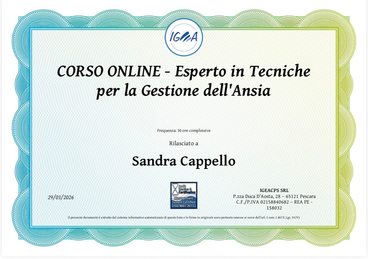 Buongiorno e grazie, l’ansia può essere un ostacolo alla serena quotidianità, é un mio ambito di particolare interesse in cui mi formo continuamente.