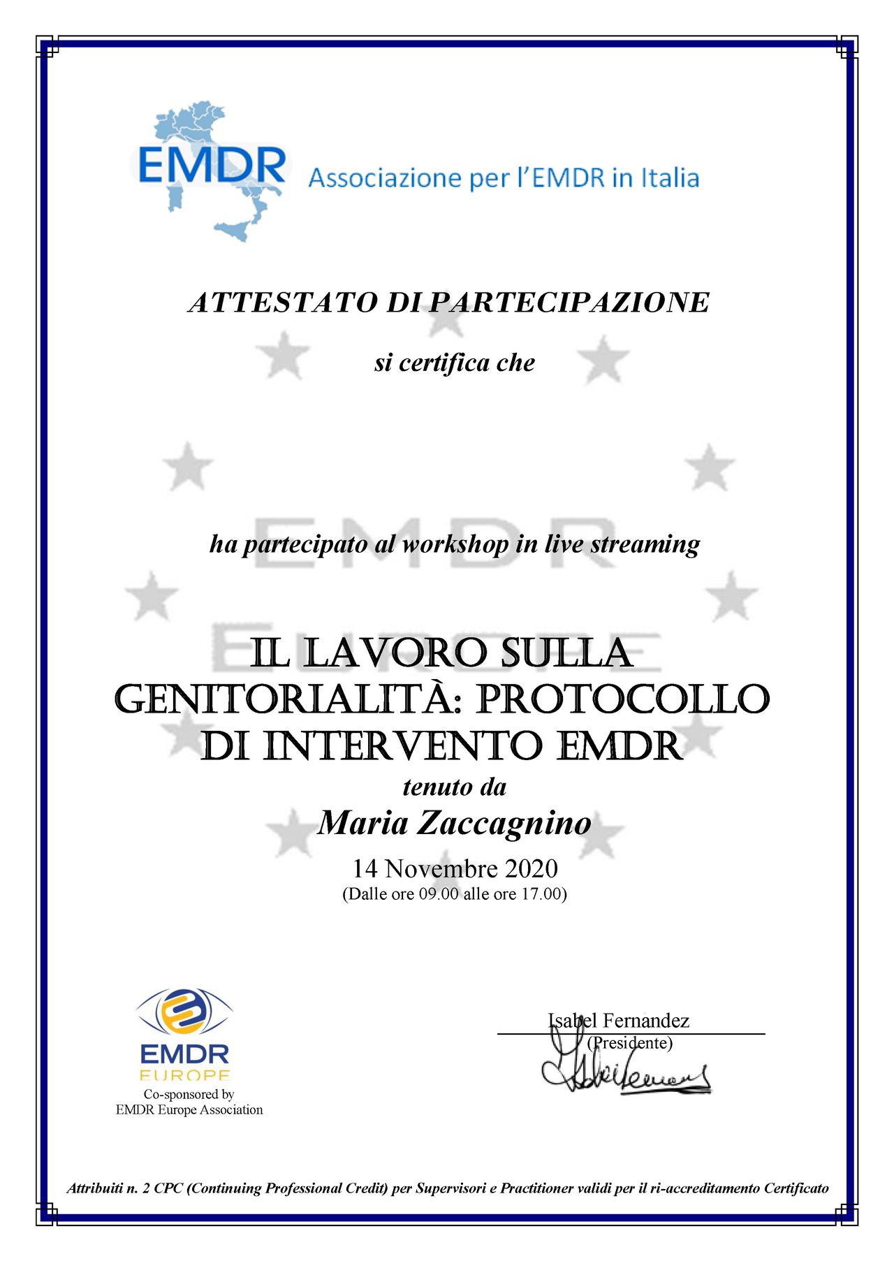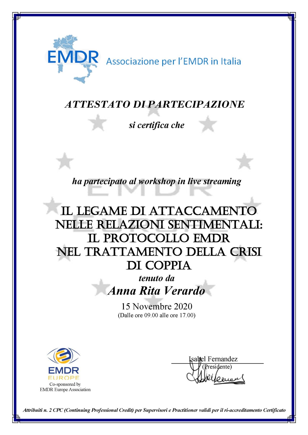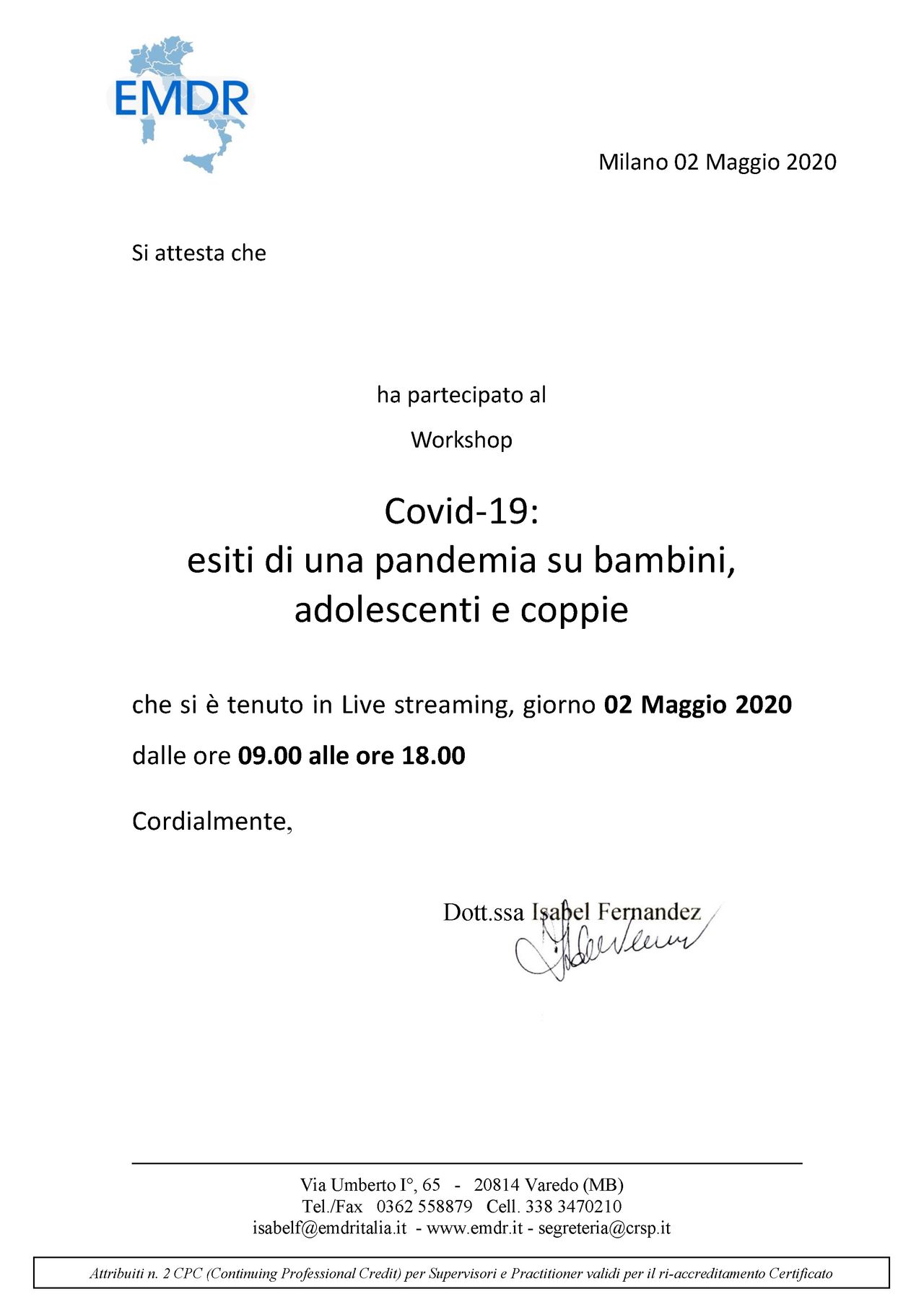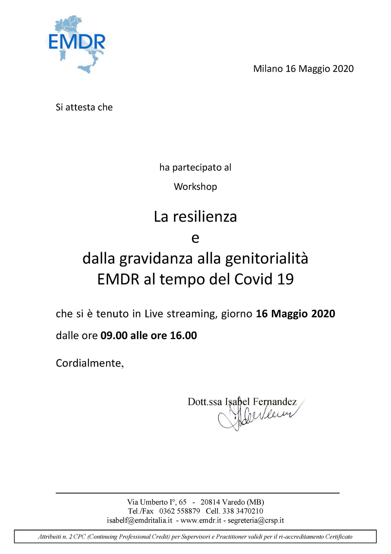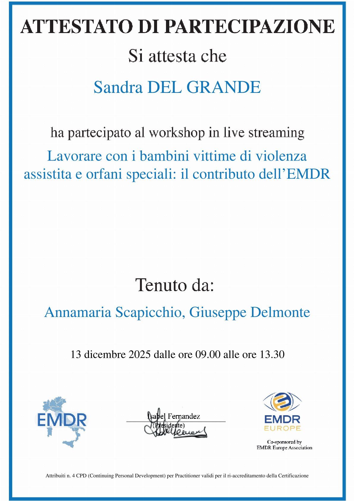 • Specialista certificata iscritta nell’elenco dei professionisti con Evergreen Certification per la gestione della rabbia in bambini e adolescenti
