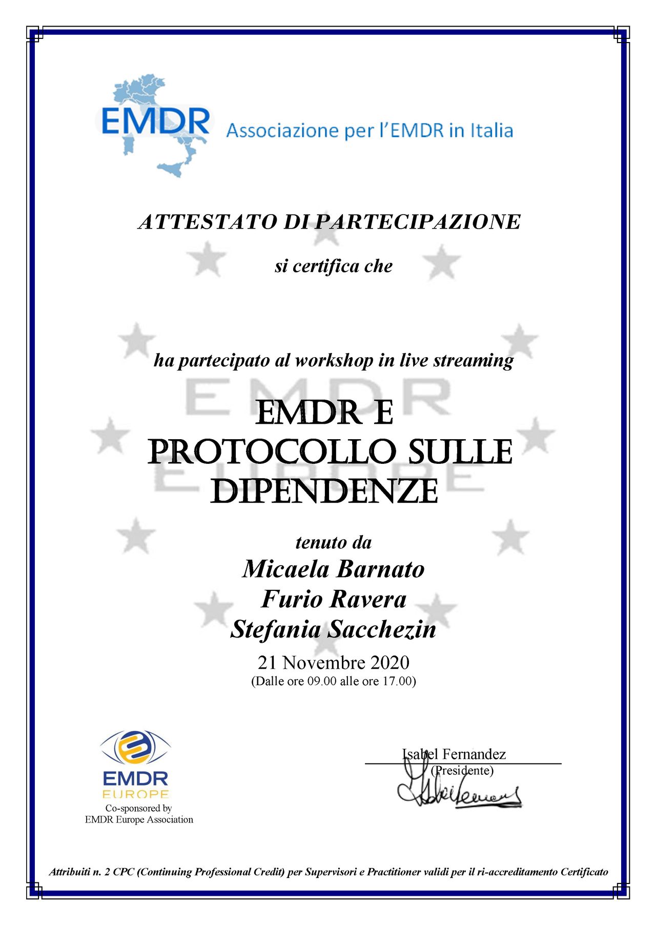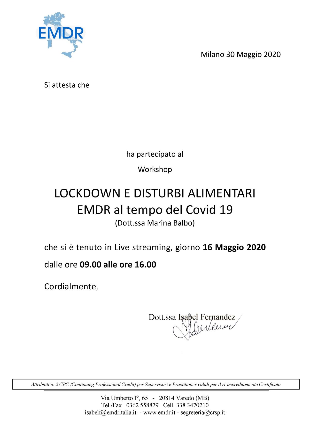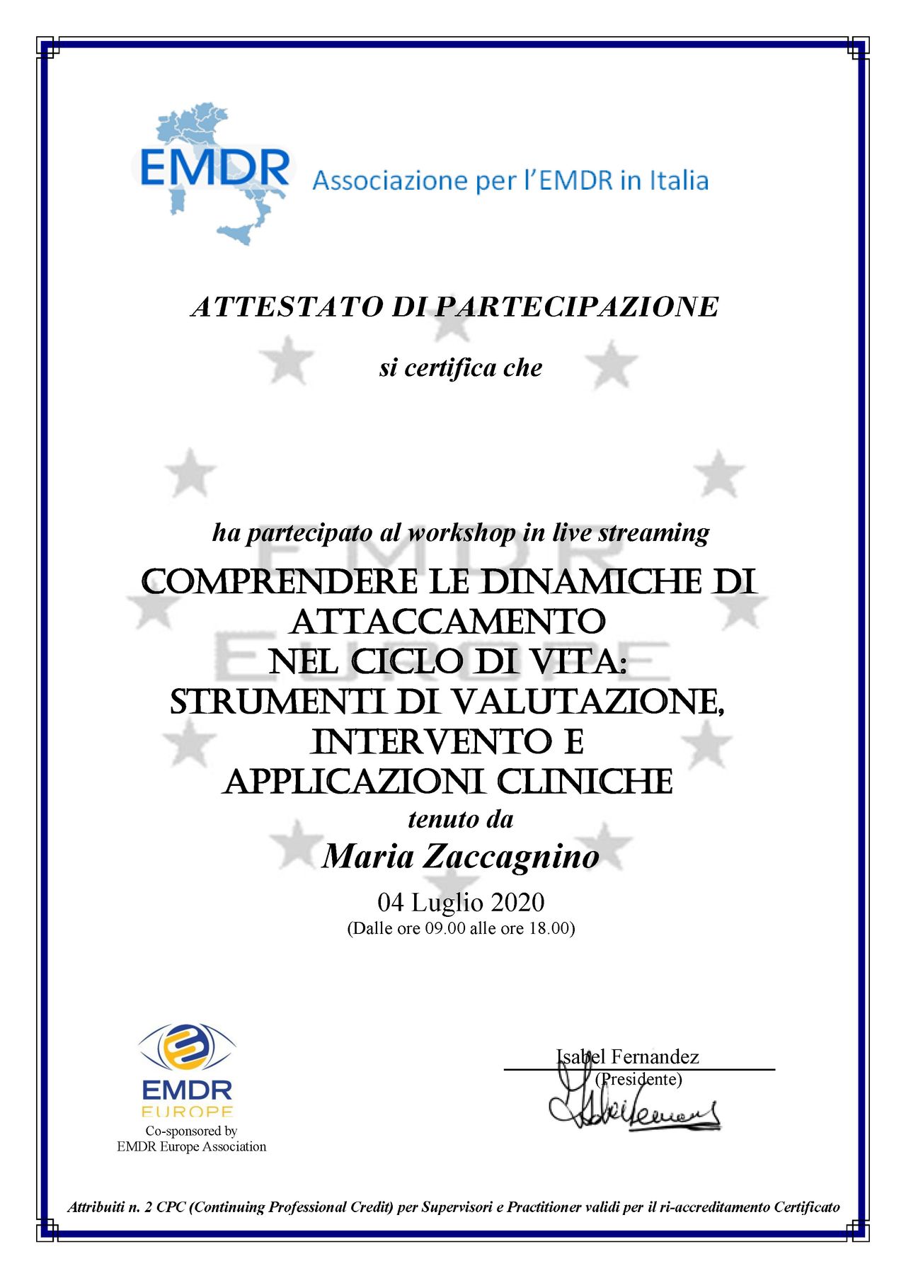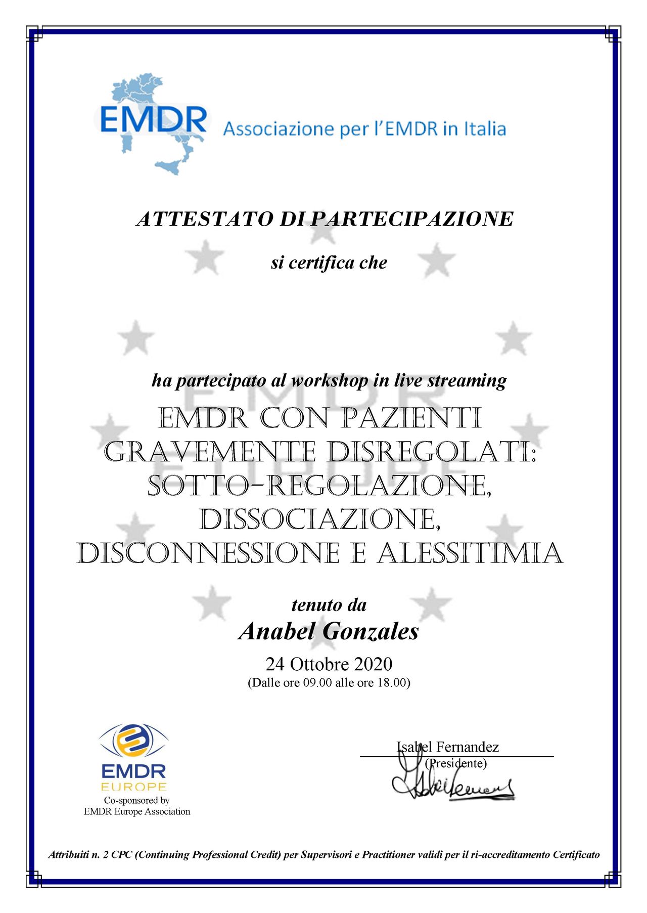 • Specialista certificata iscritta nell’elenco dei professionisti con Evergreen Certification per la gestione della rabbia in bambini e adolescenti
