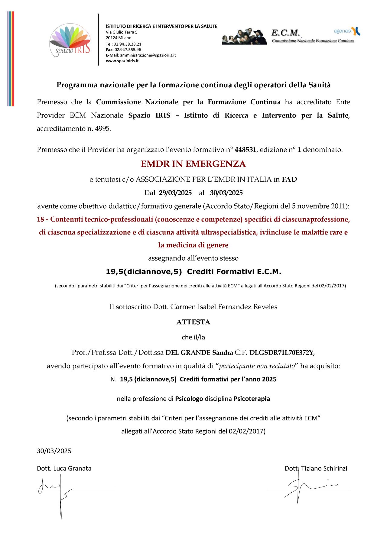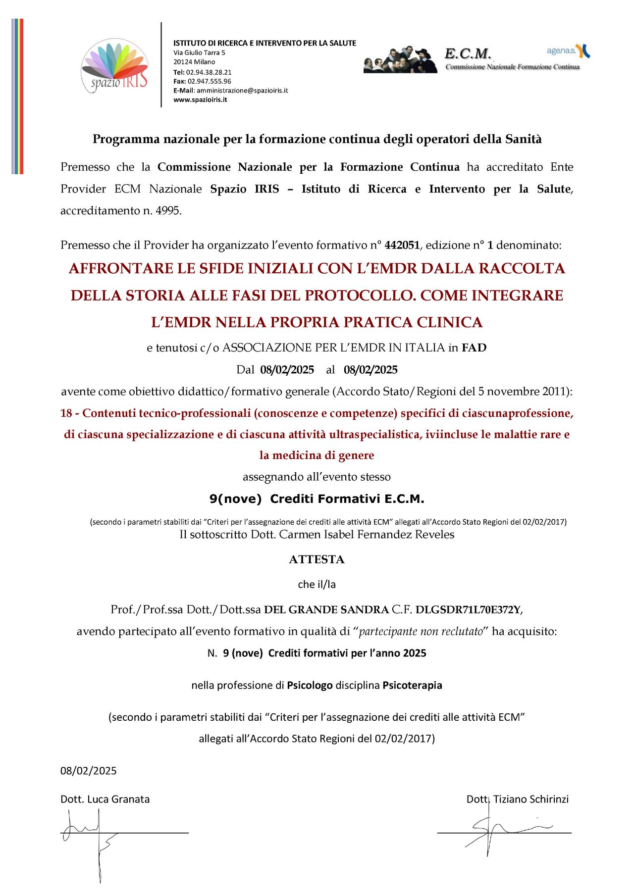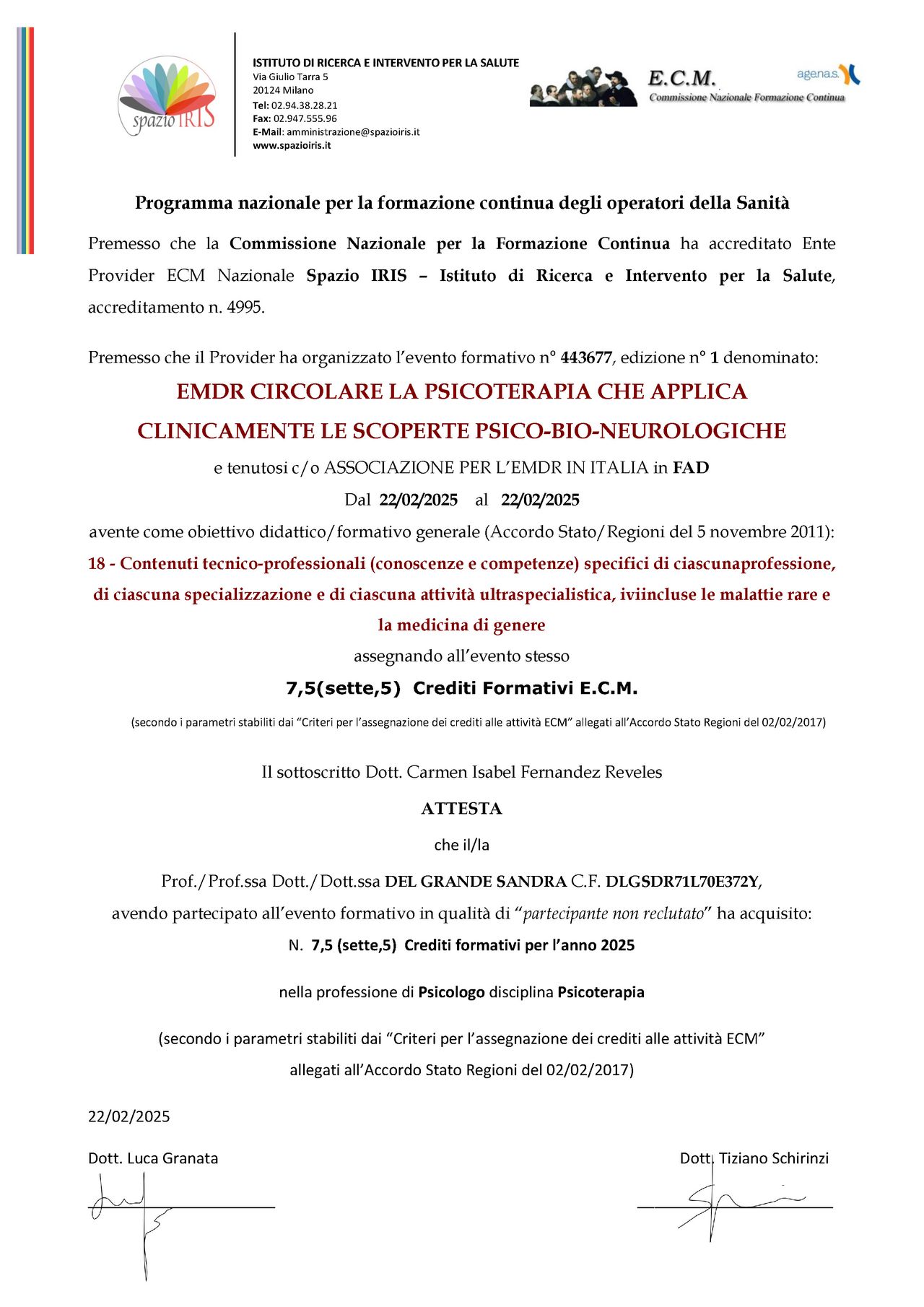 Dott.ssa Sandra DEL GRANDE: