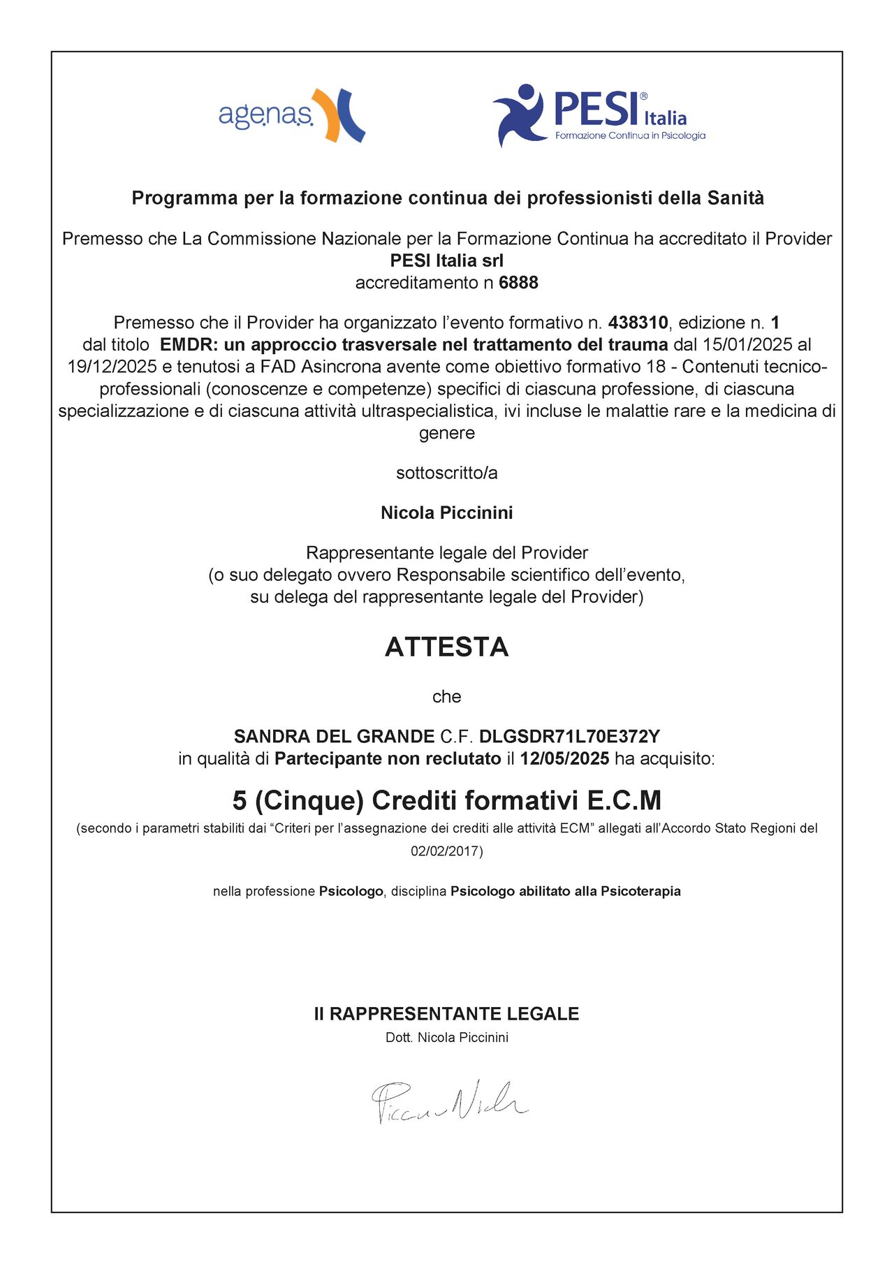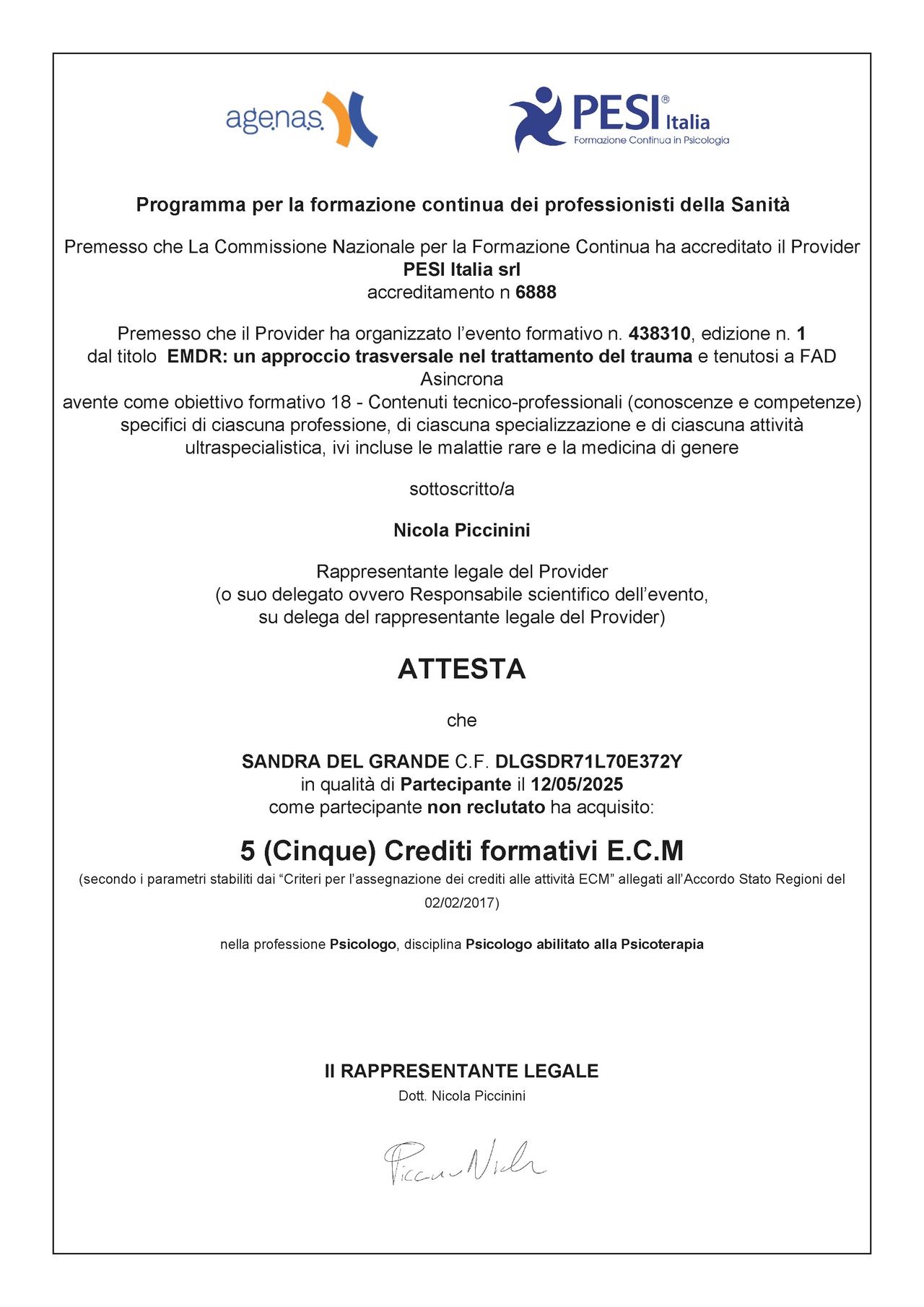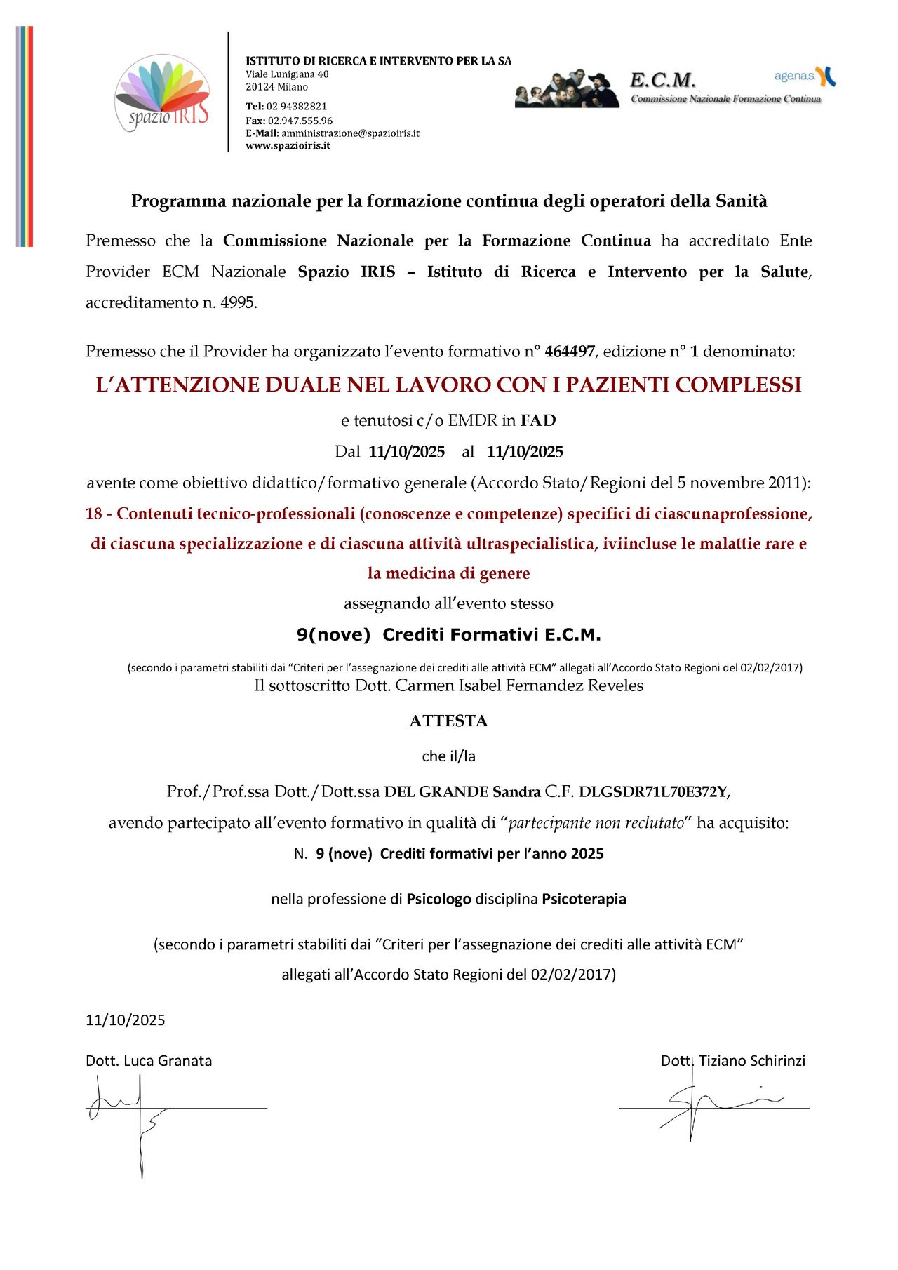 Dott.ssa Sandra DEL GRANDE: