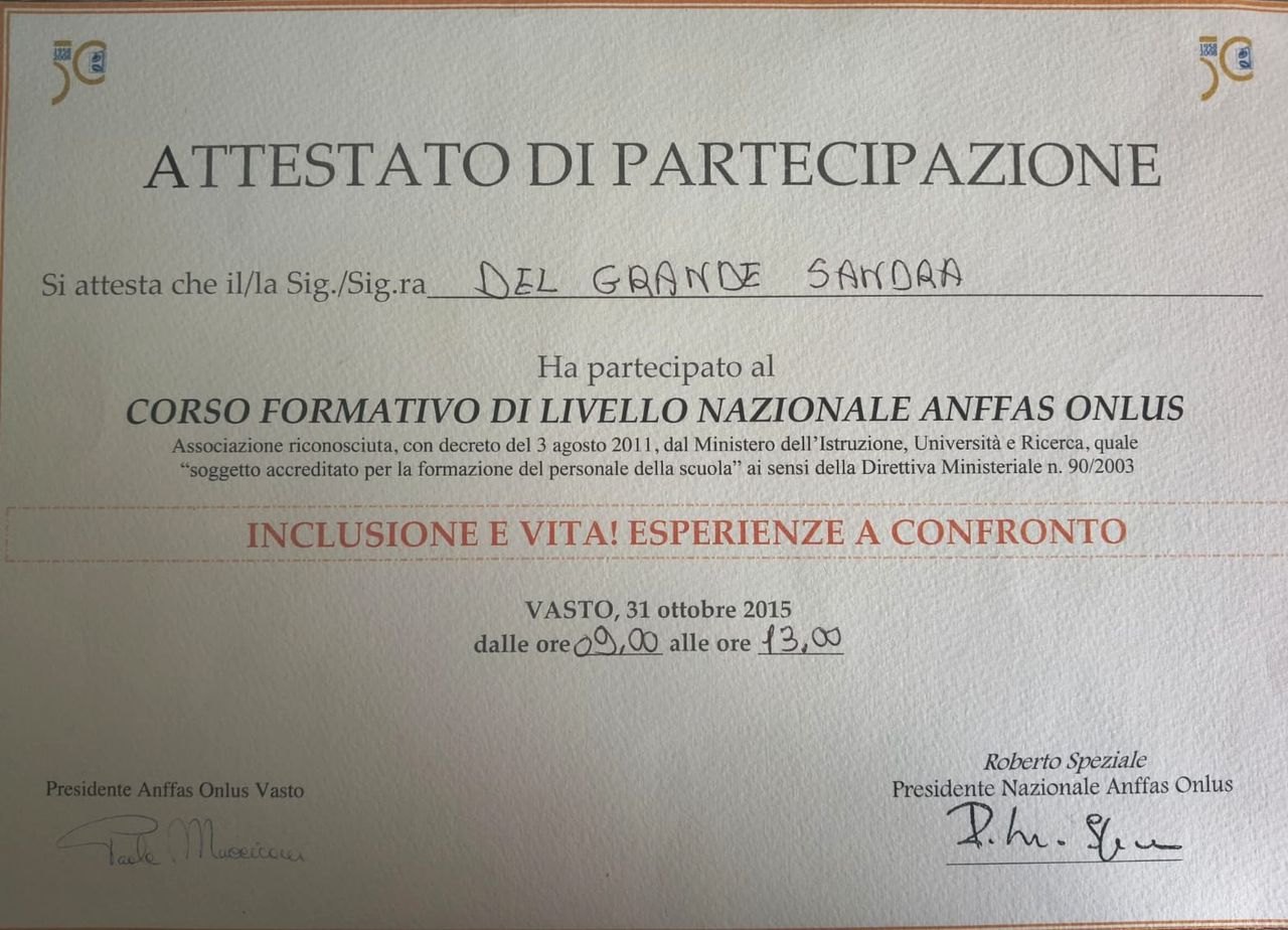 La dott.ssa Sandra Del Grande è una professionista molto competente, empatica e attenta. Fin dal primo incontro mi sono sentita accolta e ascoltata, senza alcun giudizio. Il percorso intrapreso mi ha aiutata a comprendere meglio me stessa e ad affrontare le difficoltà con maggiore consapevolezza. La consiglio vivamente.