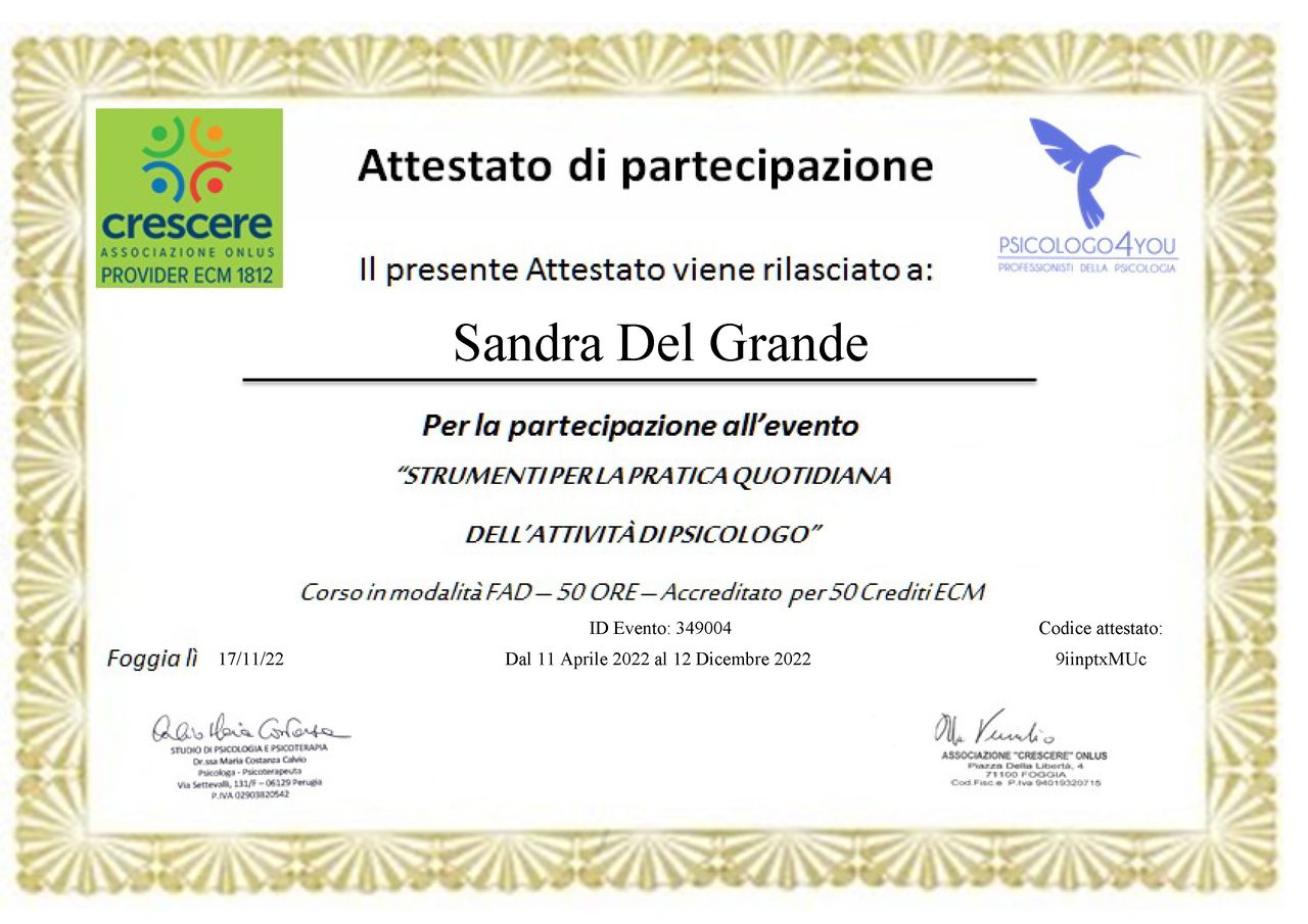 • Studio di Psicoterapia - Dott.ssa Sandra Del Grande • colloquio psicologico online •