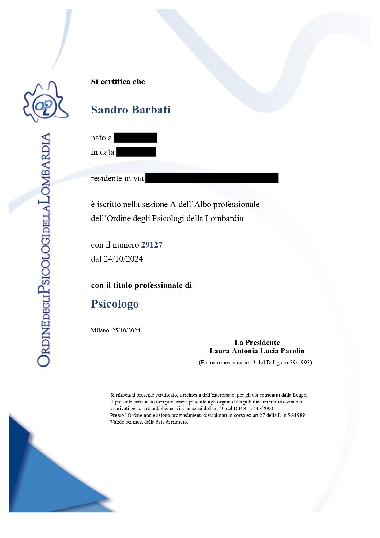 Opero nell’ambito della salute mentale e dello sviluppo personale. Integro competenze cliniche ed evolutive per accompagnare individui e gruppi in percorsi di cambiamento, consapevolezza e crescita. Psicologo professionista abilitato (n. 29127 OPL) mi sto specializzando in Psicoterapia Gruppoanalitica presso la scuola Nuova Clinica Nuovi Setting di Milano.