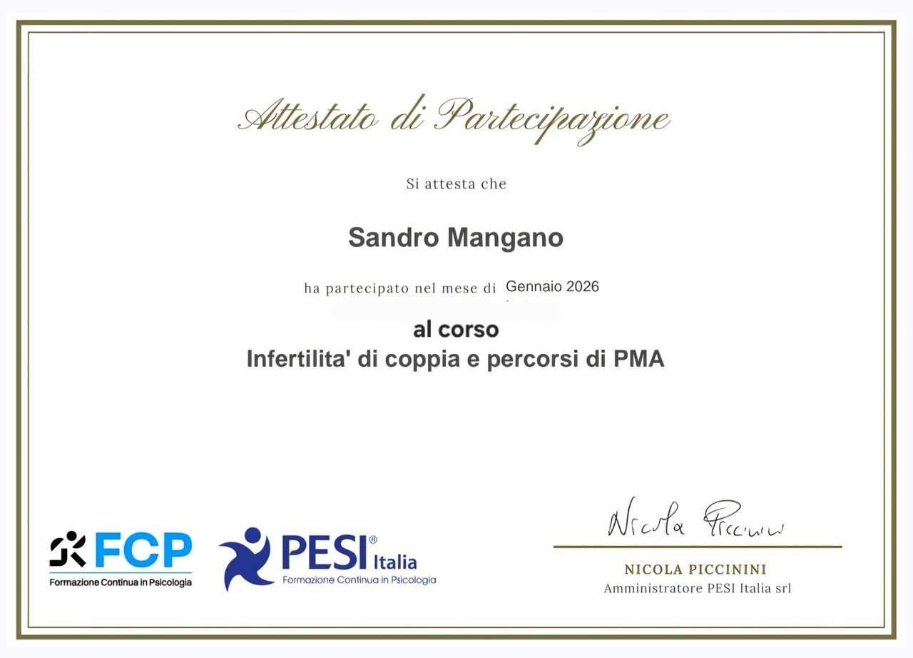 Ho iniziato il percorso con Sandro Mangano in un momento davvero delicato della mia vita, segnato da una forte dipendenza affettiva nei confronti di un uomo. Grazie alla sua professionalità, empatia e capacità di ascolto, sono riuscita poco alla volta a ritrovare me stessa.