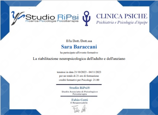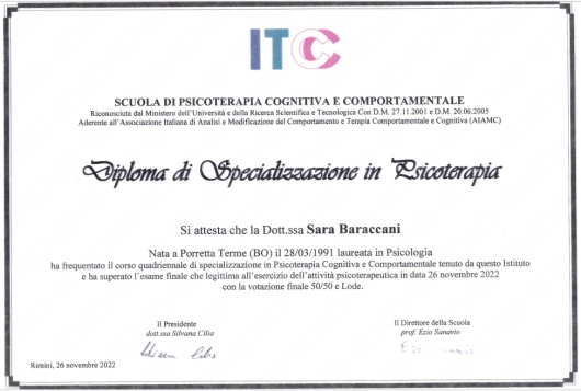 Ho il piacere di conoscere la dott.ssa Baraccani da tanti anni. La delicatezza e la sensibilità sono tra le sue migliori qualità, che permettono di instaurare una relazione basata sul rispetto e sulla fiducia. La sua professionalità, inoltre, è fondamentale per l'efficacia del percorso.