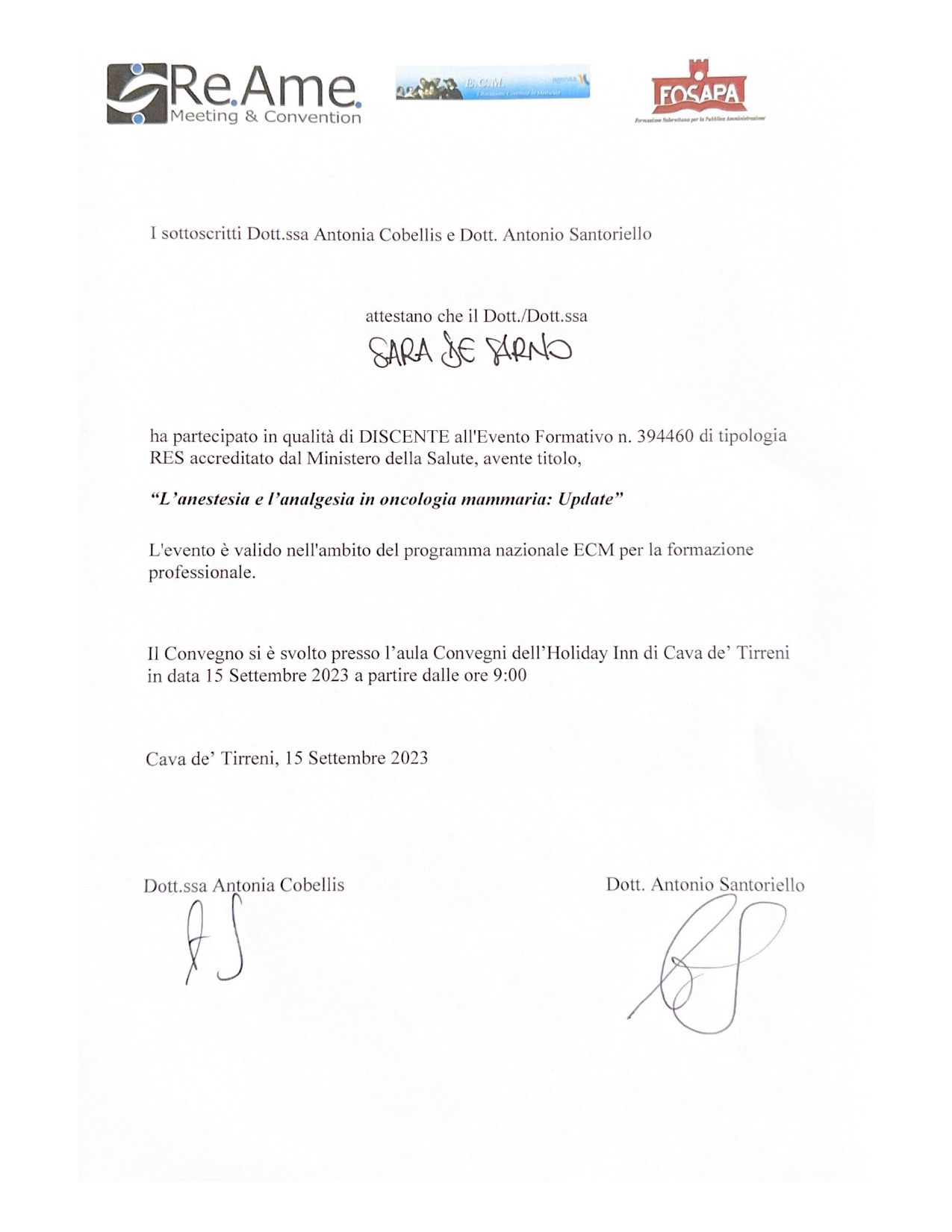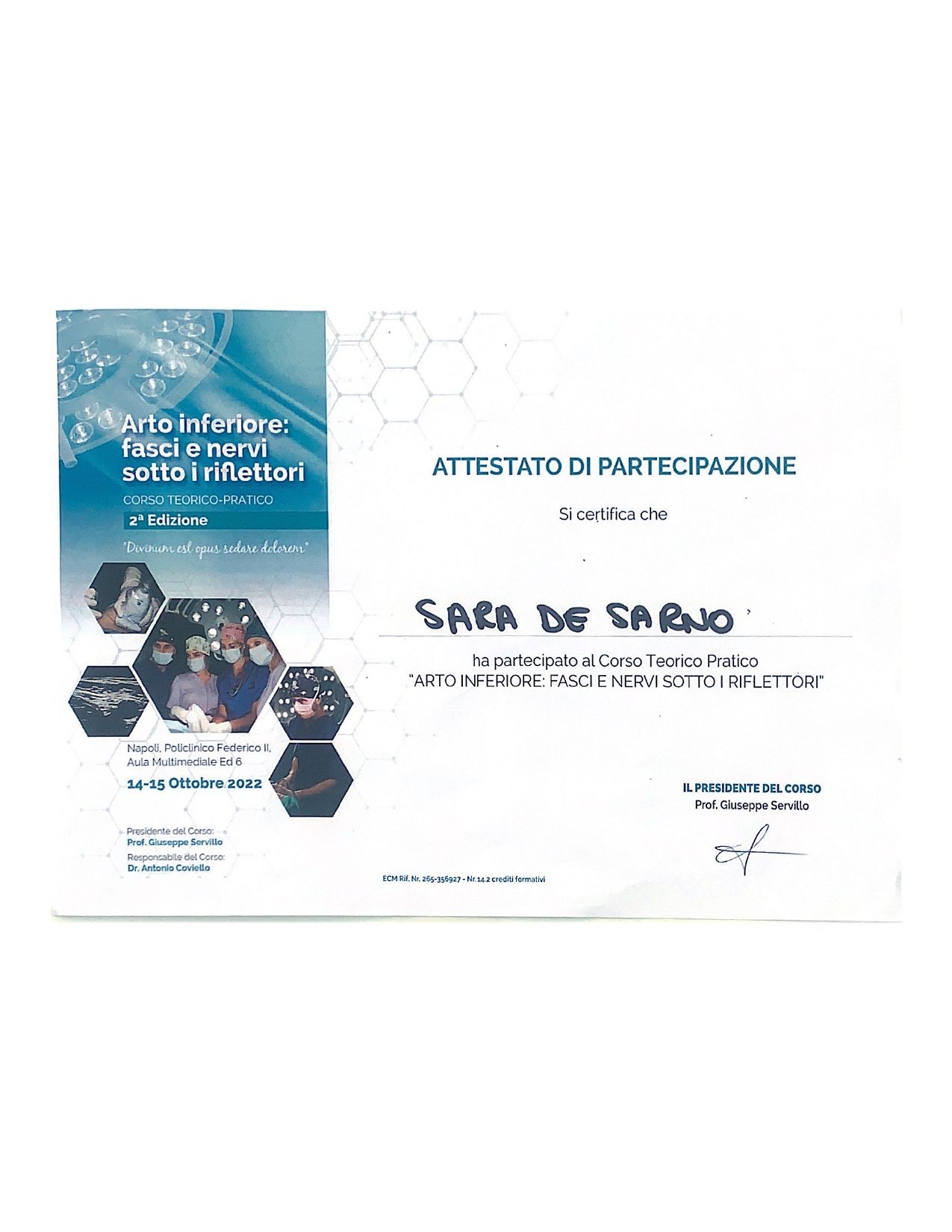 Mi è stata consigliata la dottoressa De Sarno ed ho effettuato un ciclo di ozonoterapia per gonoartrosi alle ginocchia; ho sin da subito riscontrato un netto miglioramento e una riduzione del dolore. La dottoressa, sin da subito, si è mostrata empatica ed estremamente professionale, precisa e puntuale negli appuntamenti. La consiglio vivamente!