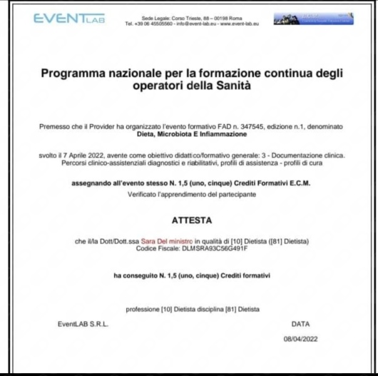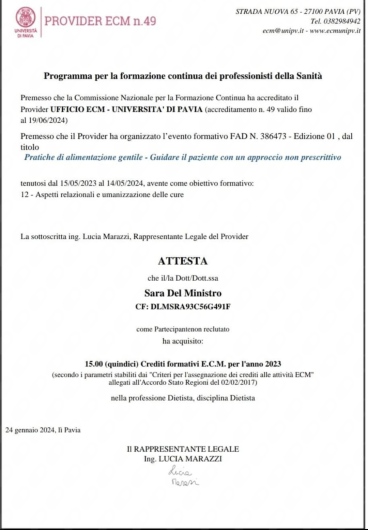 Sono quasi due anni che la Dott.ssa Del Ministro mi segue con il piano alimentare.