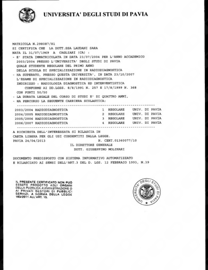 La Dott.ssa Laudani è stata attenta e scrupolosa nell'esame, fornendomi inoltre spiegazioni complete ed esaurienti. Grazie