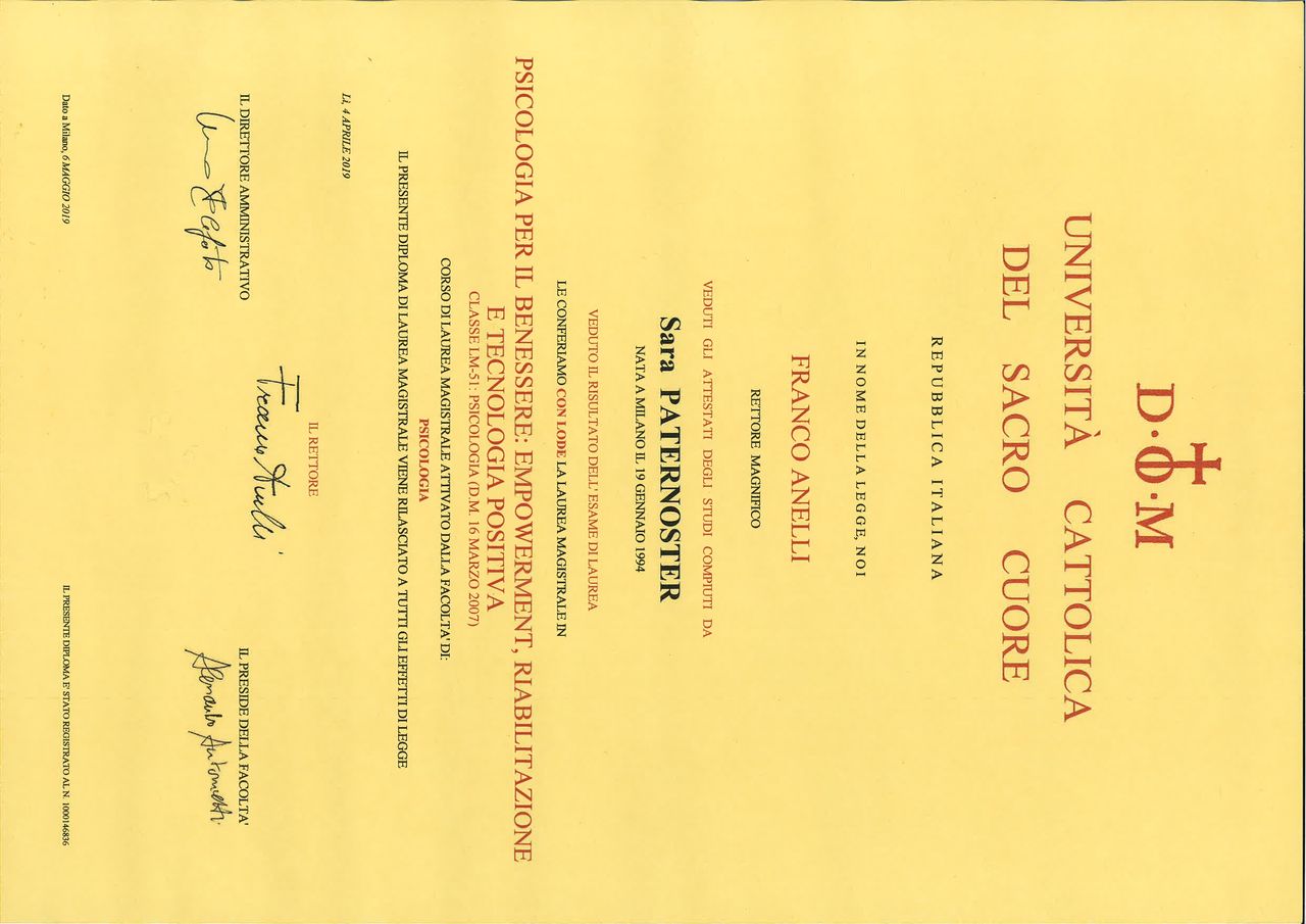 La ringrazio sinceramente per queste parole così gentili e per la fiducia che ha riposto nel mio lavoro. I risultati positivi di cui parla sono prima di tutto il frutto della sua apertura e volontà di guardarsi dentro, per prendere decisioni importanti anche rispetto alla sua vita. Mi fa piacere che lo studio e i nostri incontri siano stati lo spazio sicuro in cui poter procedere in questa esplorazione. Le faccio i miei migliori auguri per i suoi nuovi progetti per cui si è impegnata tanto. Un caro saluto.