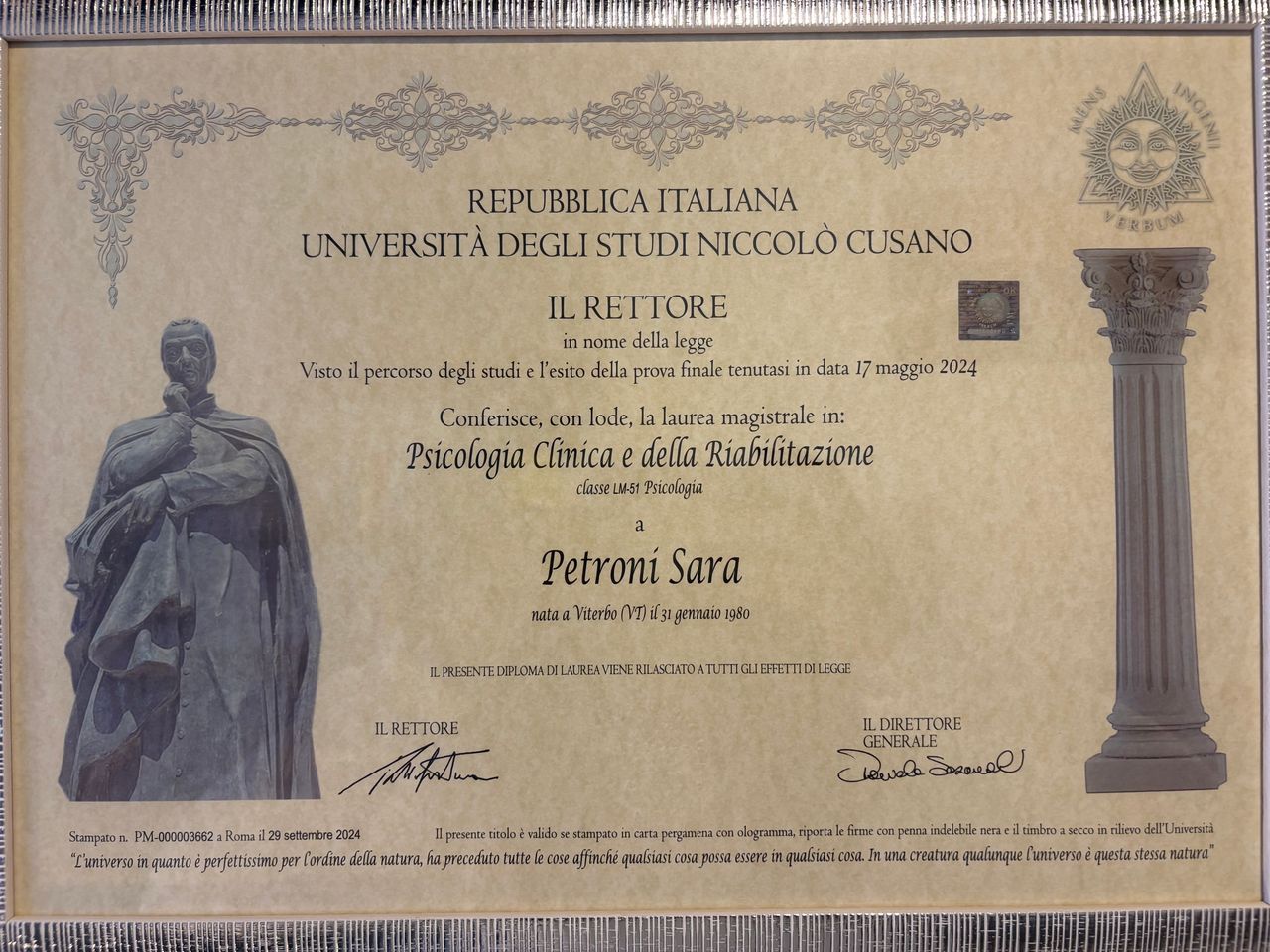 La sua professionalità. E sopratutto sono contenta è soddisfatta