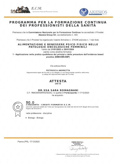 La Dott.ssa Romagnani è stata molto professionale e gentile, abbiamo fatto una piacevole chiacchierata per capire le mie esigenze, abitudini alimentari e preferenze, tutto in funzione per eseguire un piano alimentare su misura che mi permetta di raggiugere, attraverso la sua guida, i miei scopi, ridurre il girovita e il peso di conseguenza.