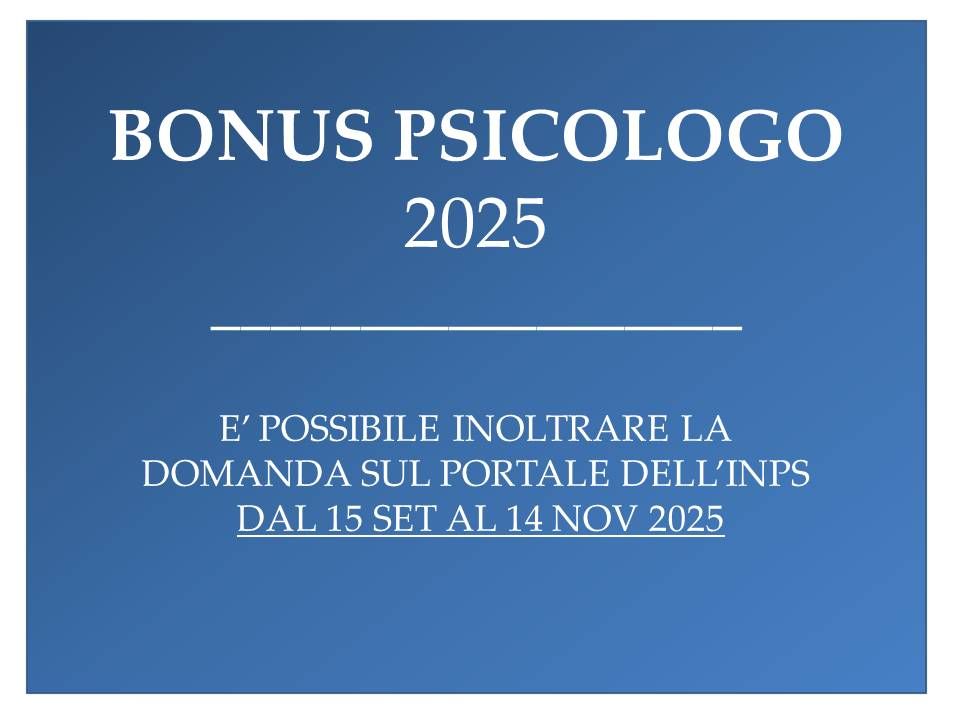E' stato pubblicato sulla Gazzetta Ufficiale il decreto interministeriale (Salute-MEF) relativo al “bonus psicologo” per l’anno 2025. L’INPS ha individuato dal 15 settembre al 14 novembre 2025 la finestra temporale per presentare la domanda di accesso al contributo per sostenere le spese relative a sessioni di psicoterapia.