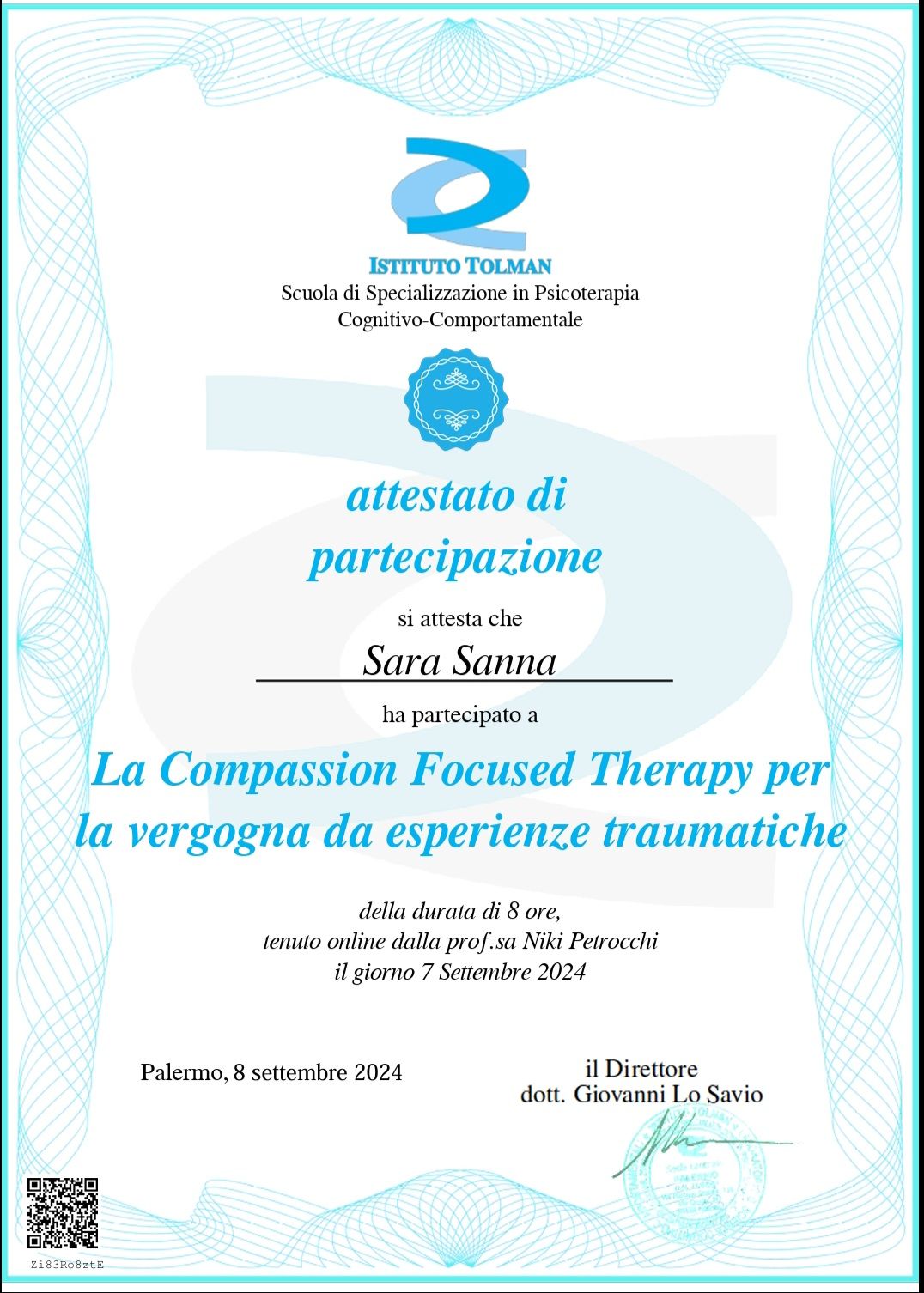 Ho passato un periodo terrificante a causa di una relazione tossica. La dottoressa Sanna é stata accogliente, empatica e finalmente mi sono sentita capita nel mio dolore. Non vedevo l’ora,ogni volta, che arrivasse il giorno del nostro appuntamento. Mi ha fornito tanti strumenti davvero utili per uscire da una condizione di sofferenza a cui sembrava impossibile poter porre fine. Dolce e calda. Una professionista davvero umana. Consigliatissima.