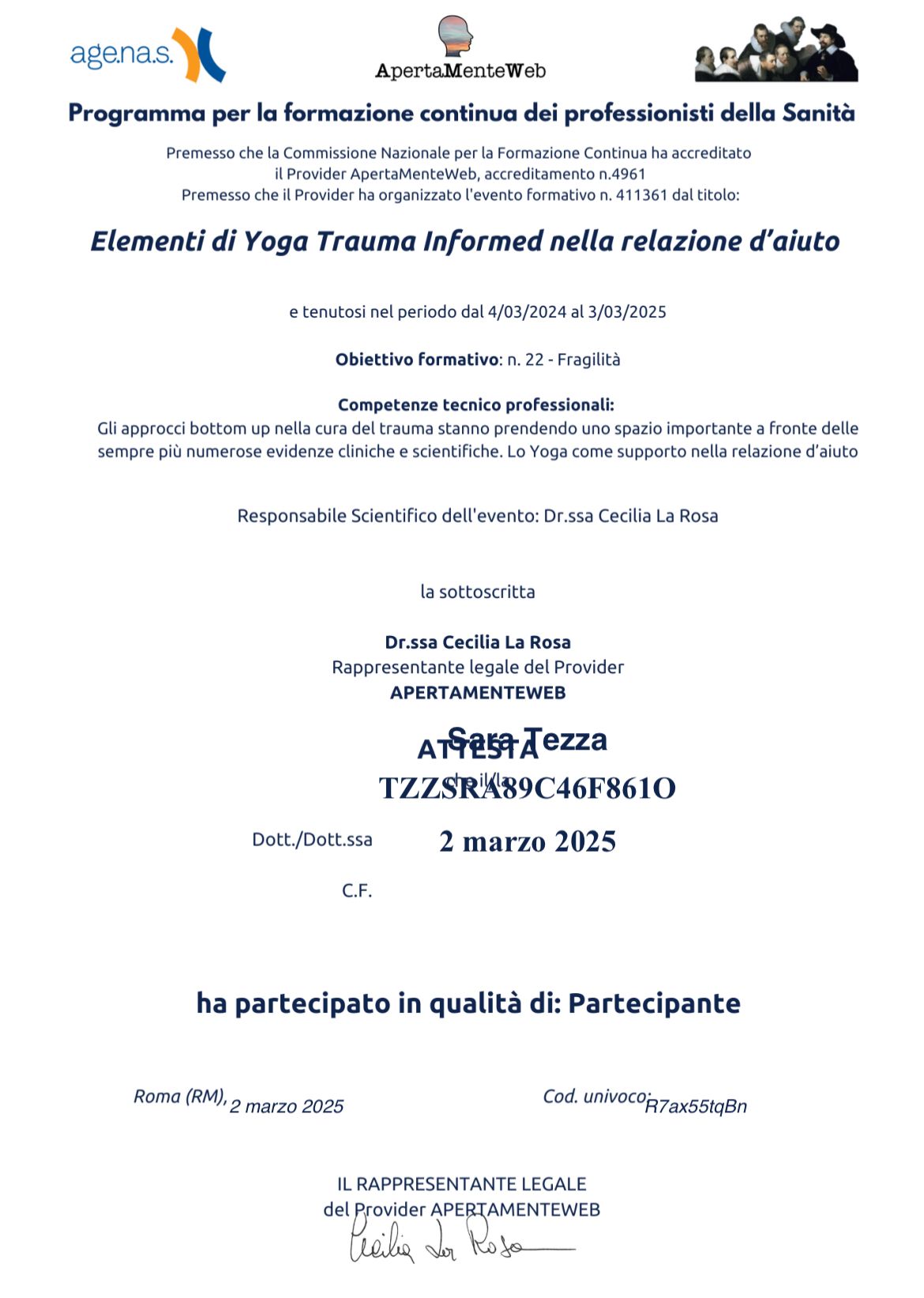 Sono stata molto fortunata a trovare la dottoressa Sara Tezza. La sua professionalità ed empatia mi hanno fatta sentire a mio agio fin dal primo momento e la sua capacità di ascoltare mi ha aiutata a comprendere meglio me stessa. La consiglio a chiunque stia cercando un aiuto professionale e umano.