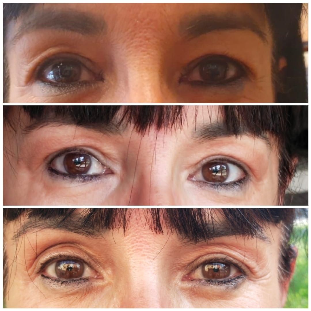 Blefaroplastica non chirurgica. La foto mostra il prima in alto, ad un mese dal trattamento in centro e a tre mesi dal trattamento in basso. La procedura è ambulatoriale. Per maggiori informazioni contattatemi per valutazione preventiva.