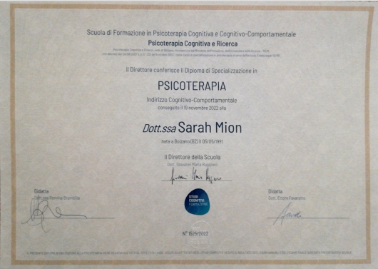 A distanza di un anno dall’inizio del mio percorso con Sarah, non posso che esprimere il mio più sincero pensiero positivo su di lei, sia come persona che come professionista.