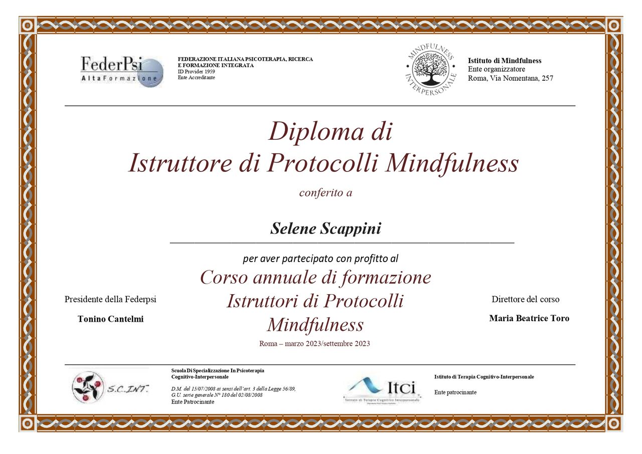 Sono la Dott.ssa Selene Scappini, psicologa del lavoro e psicoterapeuta in formazione ad indirizzo cognitivo–costruttivista presso PSIOP Padova. Lavoro con persone che si sentono sopraffatte dalle pressioni quotidiane, dallo stress lavorativo, dai conflitti familiari e dalle difficoltà relazionali. Il mio approccio mette al centro la persona e le sue risorse, aiutandola a ritrovare chiarezza, energia e equilibrio.