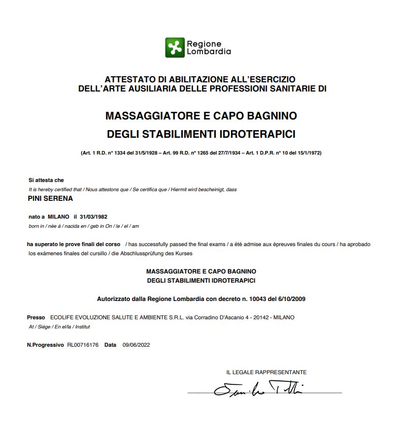 Serena e’ una professionista molto competente e attenta alle mie esigenze. Ho percepito da subito passione e dedizione in ogni suo gesto. La consiglio a chi cerca qualità e professionalità. Per me ha fatto un miracolo! Adesso ho una schiena nuova! Non potrei più farne a meno!