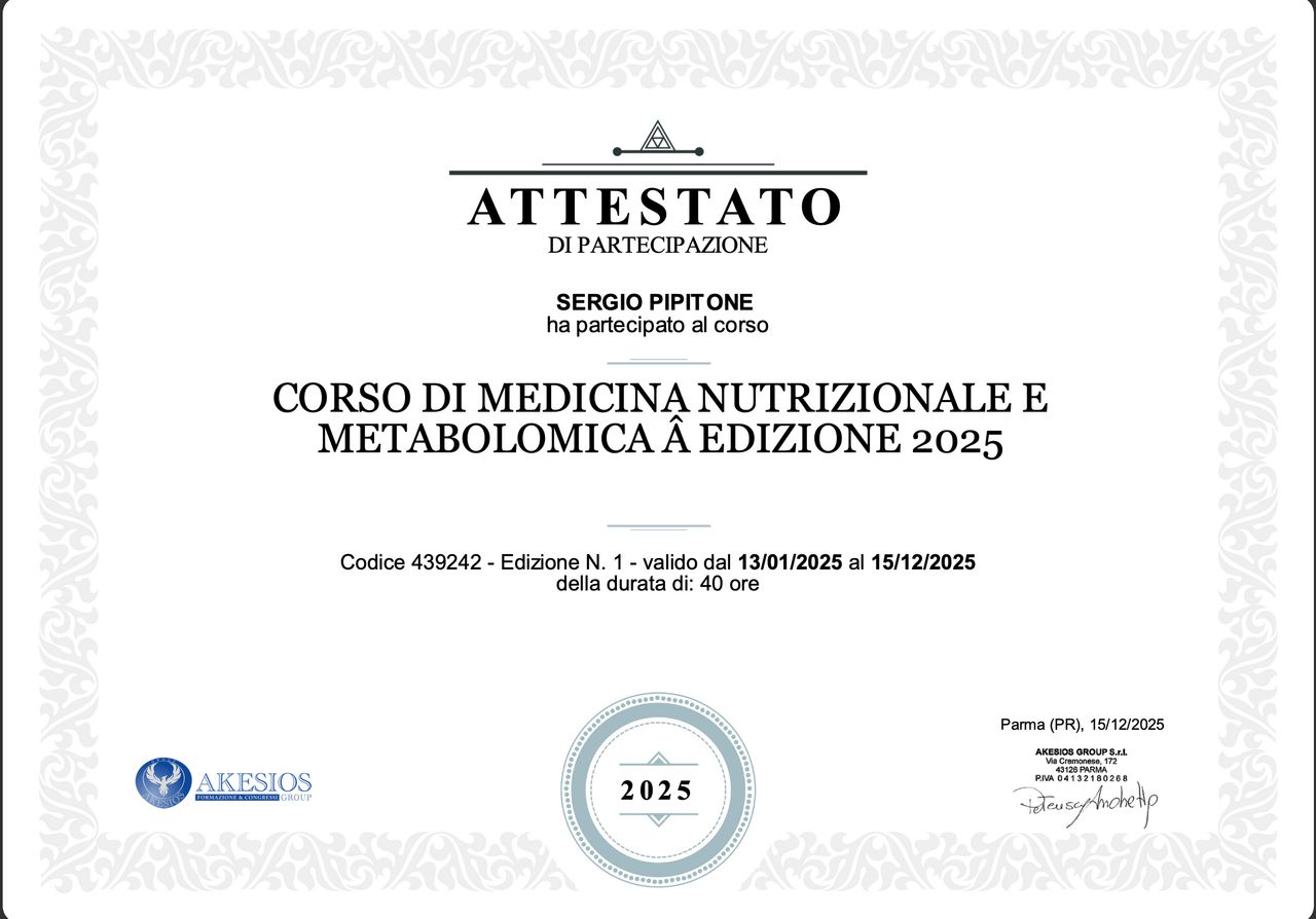 Sono Sergio Pipitone, specialista in cardiologia con particolare attenzione alla prevenzione e alla salute globale.