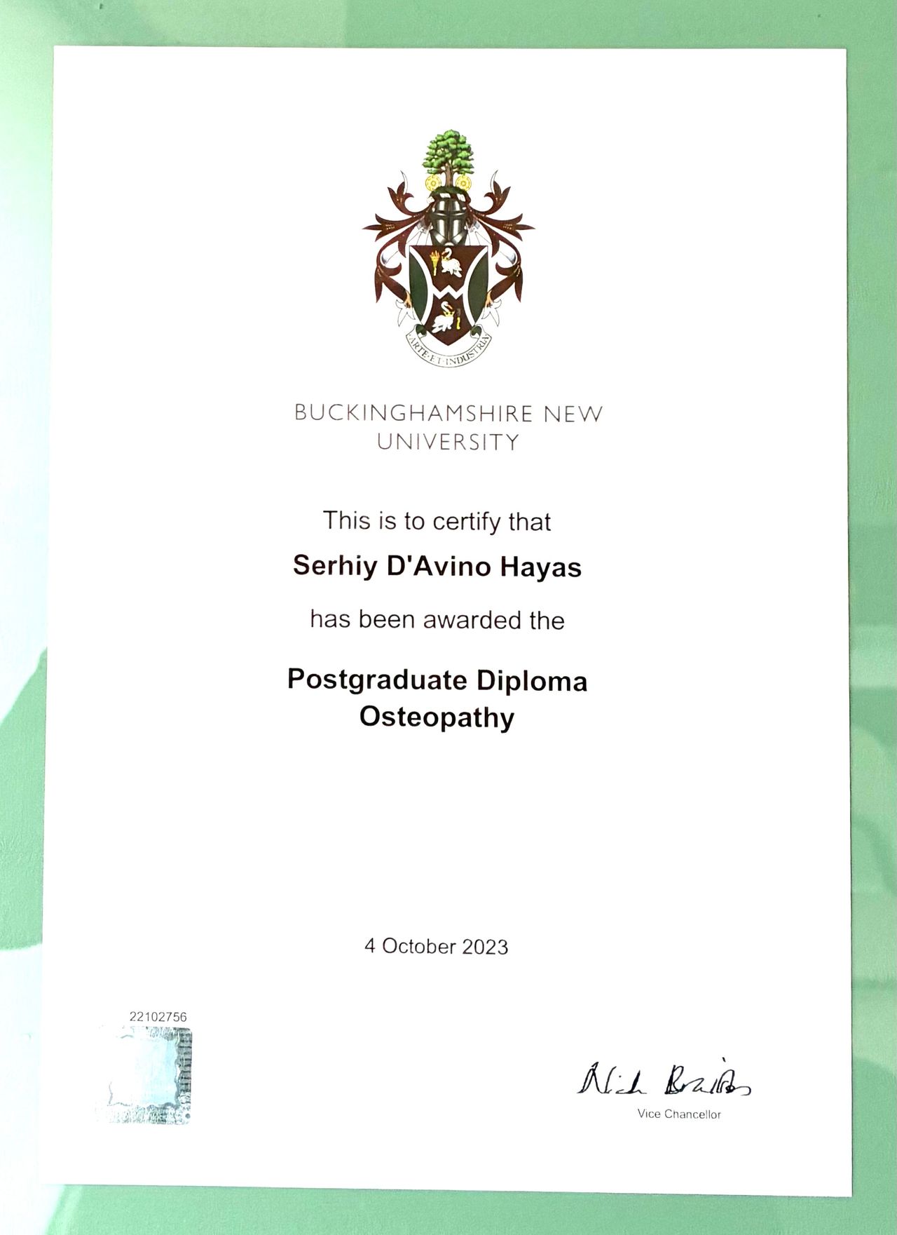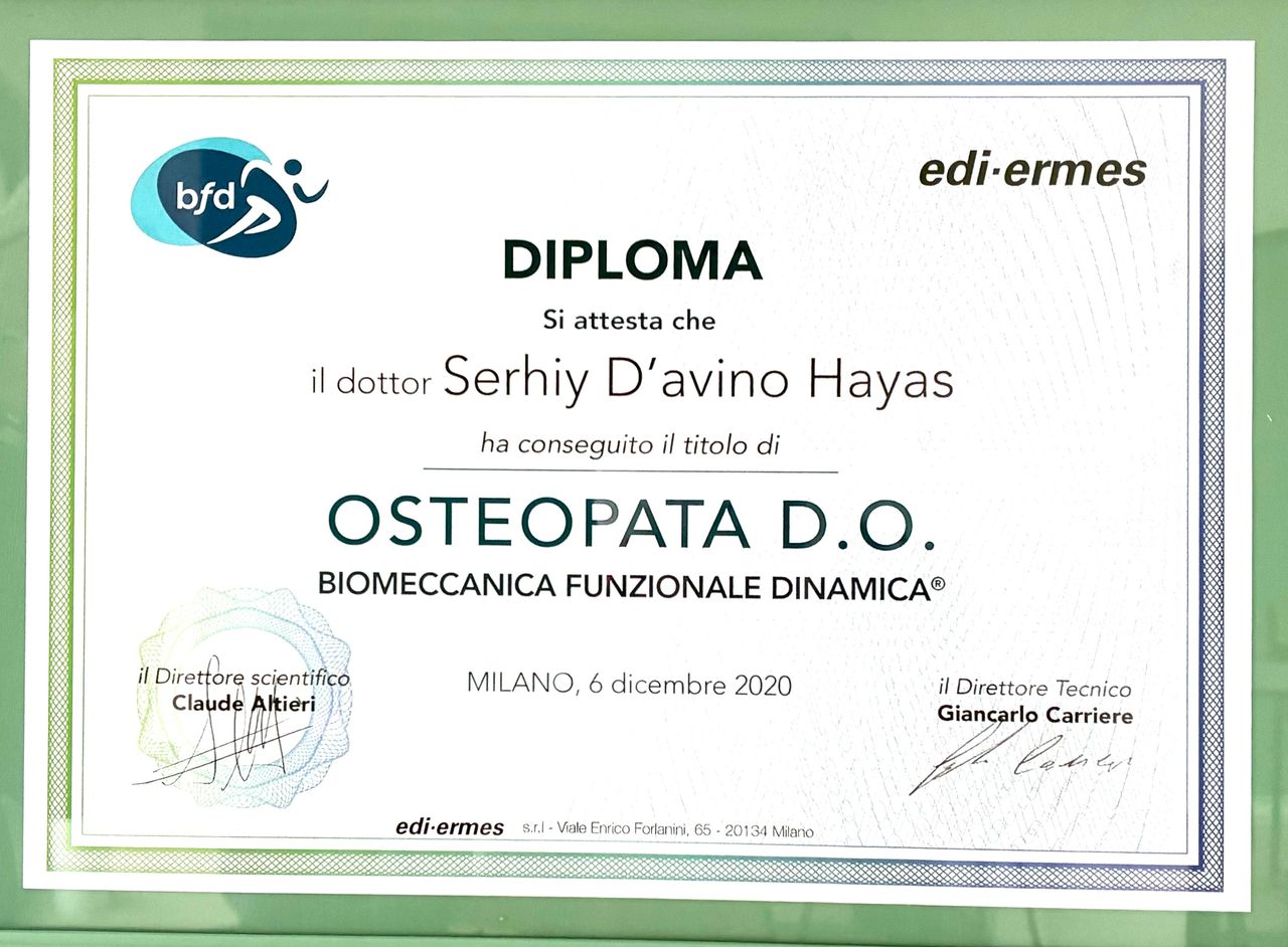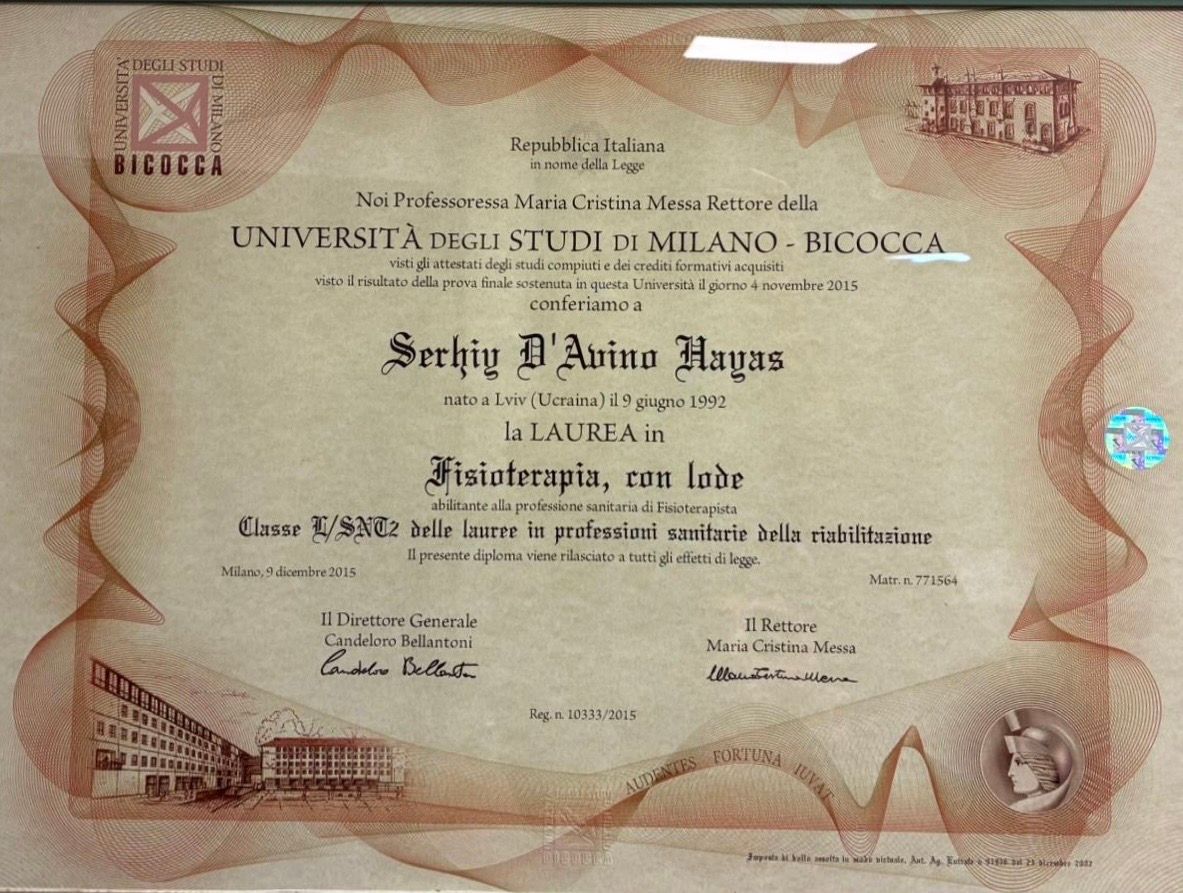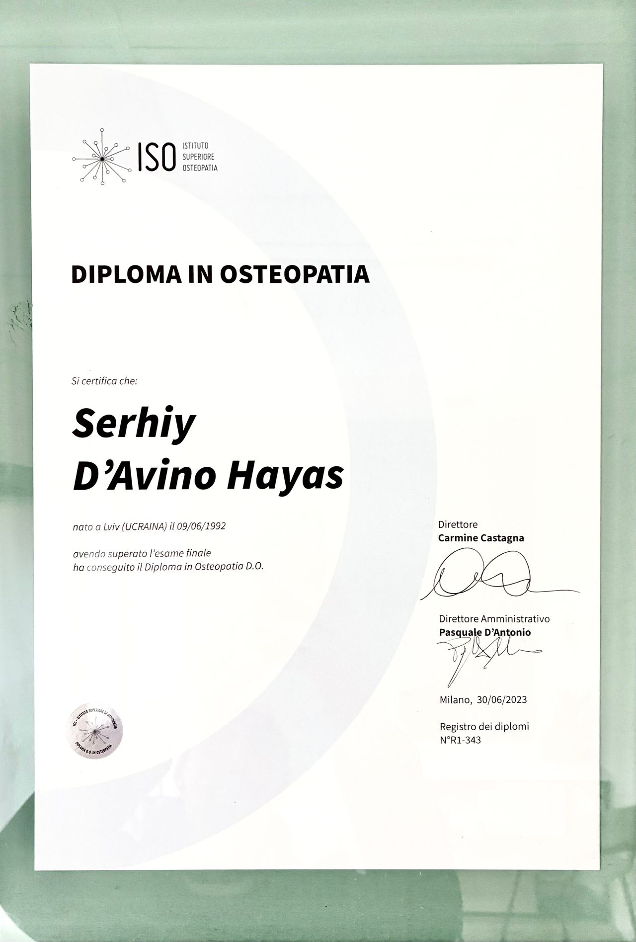 Il Dottor D'AVINO HAYAS SERHIY è un ECCELLENZA nel suo campo, sia come FISIOTERAPISTA, sia come OSTEOPATA! È molto professionale, competente, chiaro nelle spiegazioni, se hai dubbi te li chiarisce, è empatico. È un professionista molto molto valido!!! Lo consiglio a chiunque ha bisogno di un fisioterapista o un osteopata!!! Il DOTTOR D'AVINO HAYAS SERHIY È UN ECCELLENZA NEL SUO CAMPO!!!