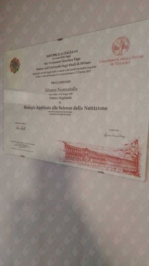 Laurea specialistica in Biologia Applicata alle Scienze della Nutrizione, presso l’Università degli Studi di Milano, laurea conseguita nell’Ottobre 2013, con il massimo dei voti.