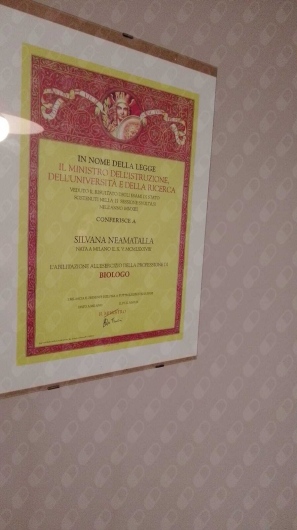 Idoneità all’abilitazione della professione di biologo ottenuta in seguito al superamento dell’esame di stato nel Dicembre 2013 e iscrizione all’Albo professionale dell’Ordine Nazionale dei Biologi nella sezione A, con il N. AA_071113.