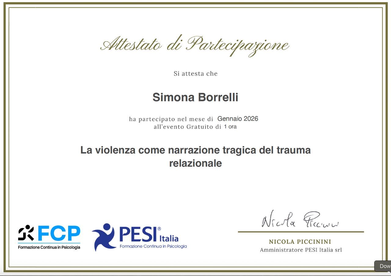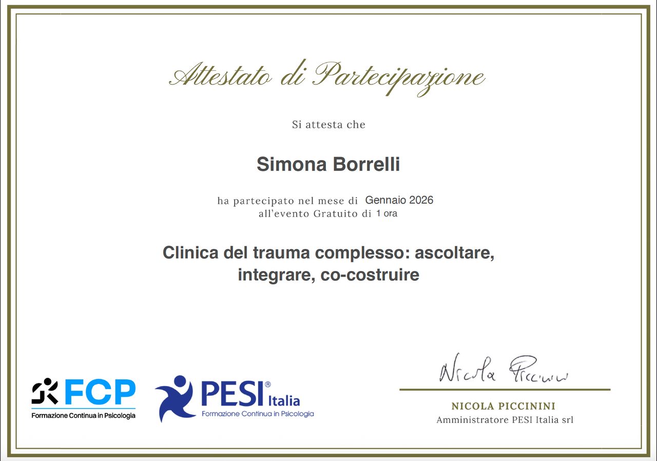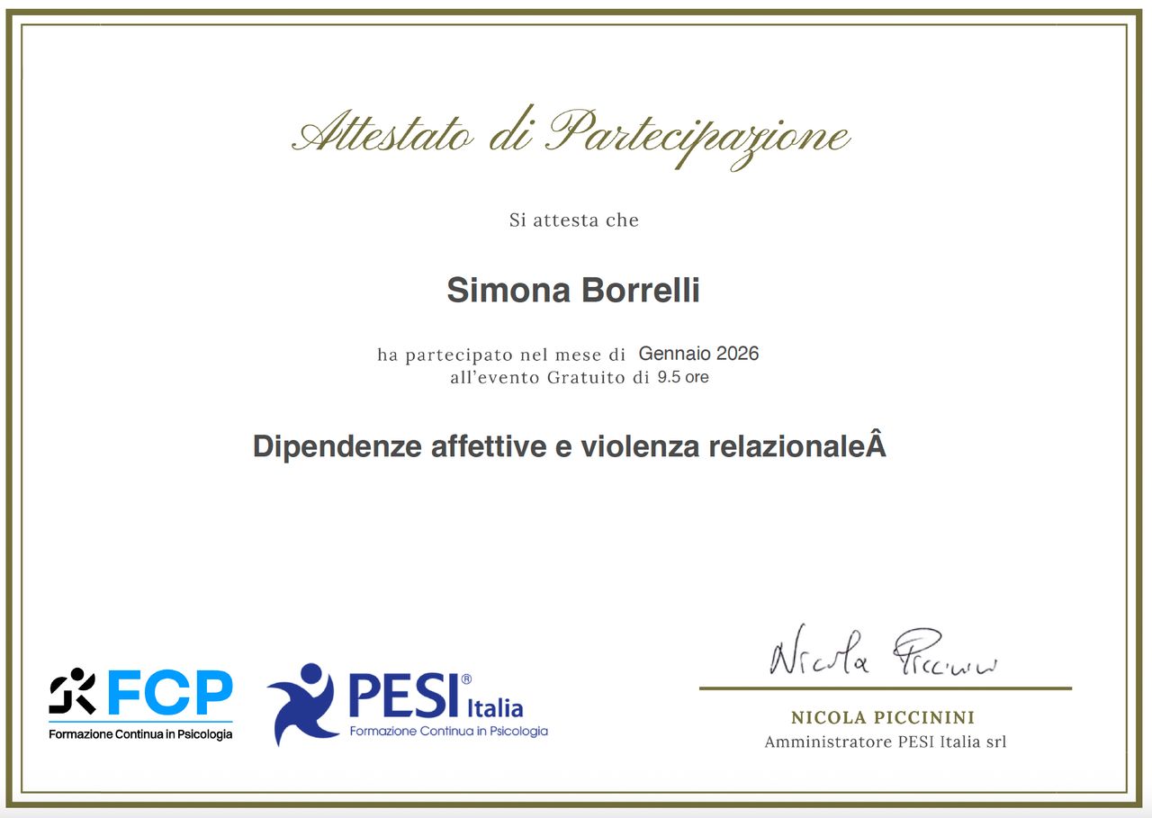 Il mio percorso con la dottoressa Simona Borrelli è iniziato in un momento difficile della mia vita. Fin dal primo incontro, ho trovato un ascolto autentico, privo di giudizio, e una guida delicata ma ferma. Con il suo aiuto sto imparando a comprendere meglio me stesso, i miei schemi, le mie fragilità, ma anche le mie possibilità di cambiamento.