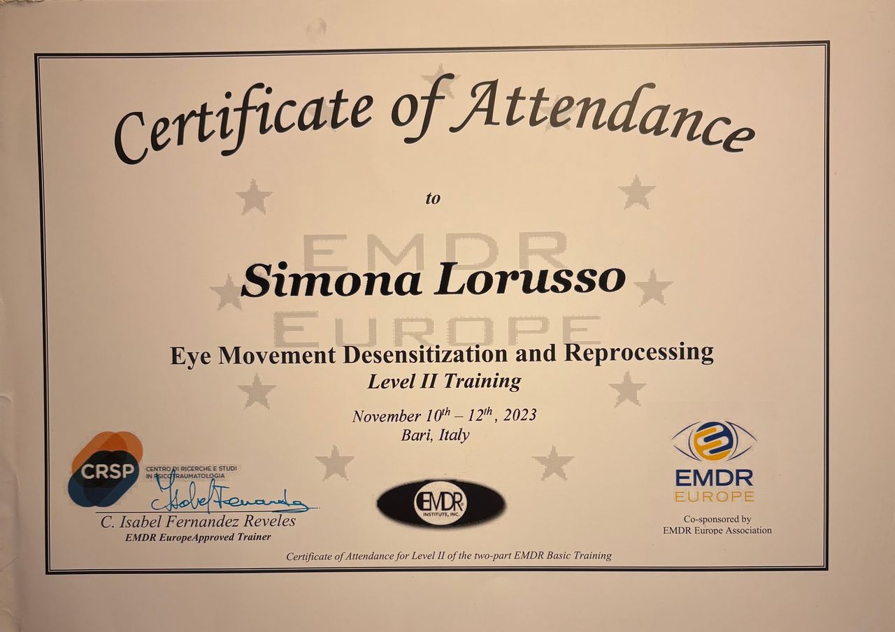 Mi occupo, inoltre, dell'elaborazione di eventi traumatici e luttuosi attraverso il metodo EMDR (Eye Movement Desensitization and Reprocessing).