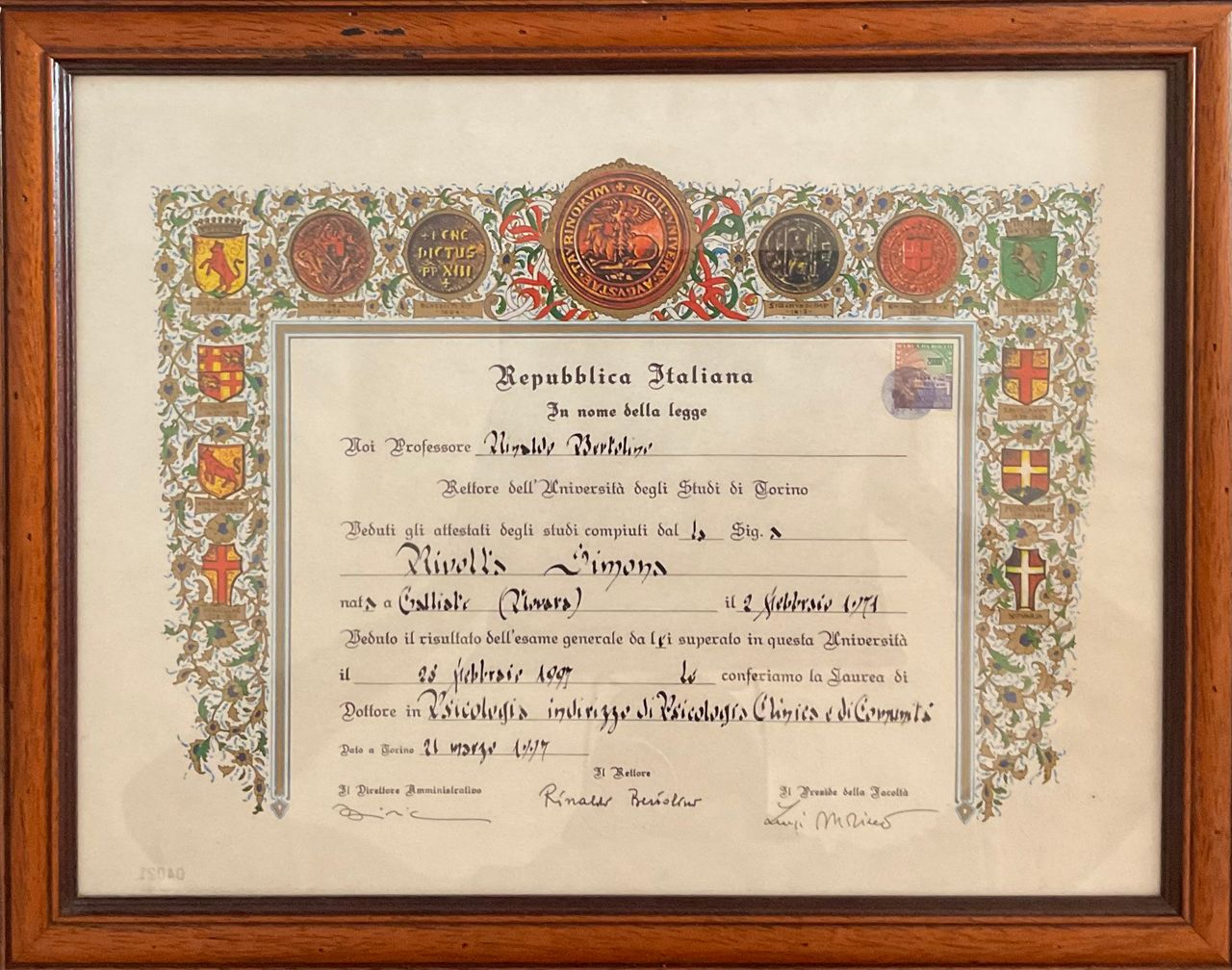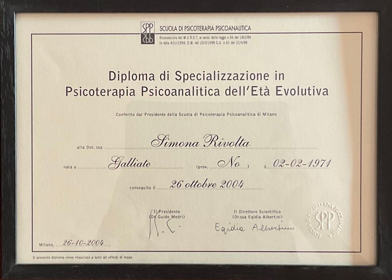 Mi sono laureata in Psicologia Clinica a Torino nel 1997 e, dal 1999, lavoro come libera professionista. Nel 2004 ho completato la mia formazione come Psicoterapeuta dell’età evolutiva alla SPI di Milano.
