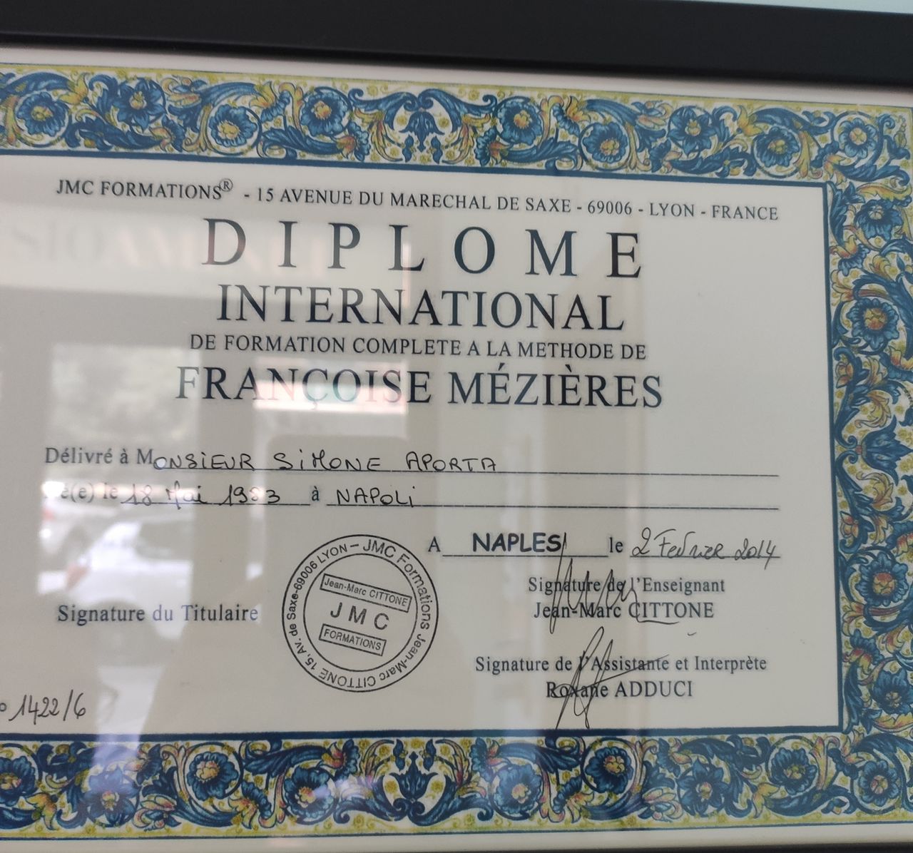 Specializzando in osteopatia al terzo anno in corso presso la SEFO Napoli, già specializzato in terapia posturale secondo il metodo Mézières, diplomato alla scuola JMC formation di Lyon.