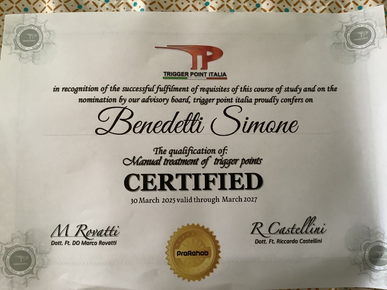 Nel 2024 mi sono diplomato in osteopatia. Una professione sanitaria che parte da una valutazione precisa posturale per individuare la causa che porta ad uno scompenso fisico doloroso. Vengono utilizzate esclusivamente tecniche manuali e va ad agire su tutti i sistemi presenti nel corpo.