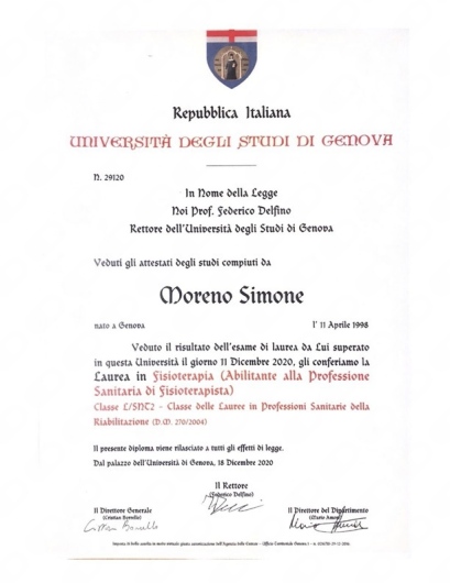 Regolarmente iscritto all’albo della professione sanitaria di Fisioterapia con il numero 1884 presso l’Ordine TSRM PSTRP di Genova, Imperia e Savona.