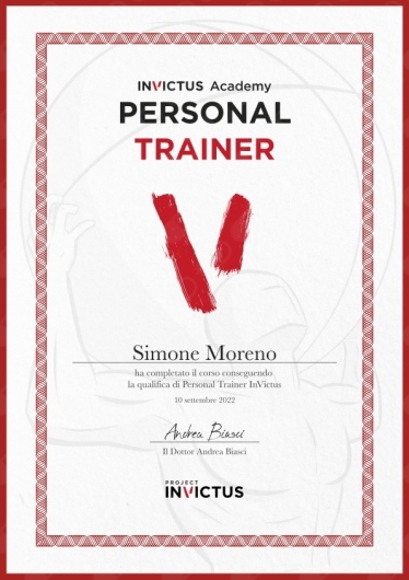 Contemporaneamente alla quotidiana attività professionale ha intrapreso il corso di studi della Project Invictus Academy atto al raggiungimento della qualifica di Personal Trainer VT3, per un maggiore approfondimento in merito all’esecuzione degli esercizi in ergonomia articolare e nel rinforzo muscolare per un percorso di acquisizione e di approfondimento al fine di integrare le proprie conoscenze fisioterapiche e garantire un recupero a 360° gradi del paziente.