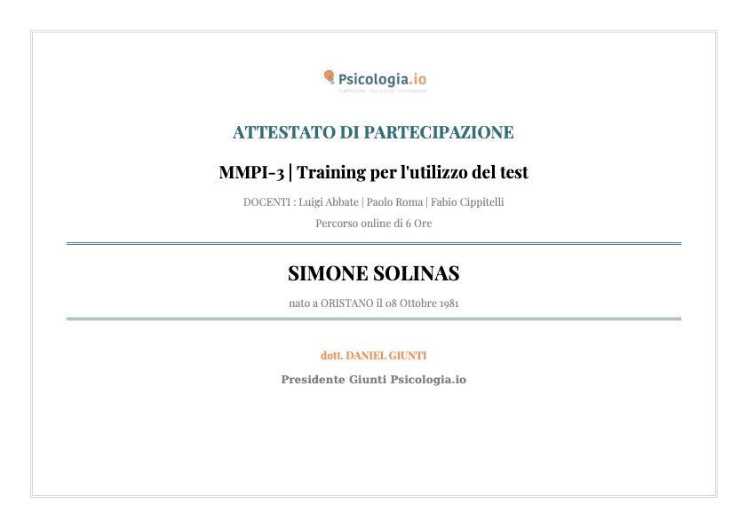 Io e mia moglie ci siamo rivolti al Dott. Solinas in un momento di fortissima difficoltà. Ora che il percorso è terminato posso ringraziare di cuore il dottore. Empatico, professionale e mai giudicante. Consigliato!