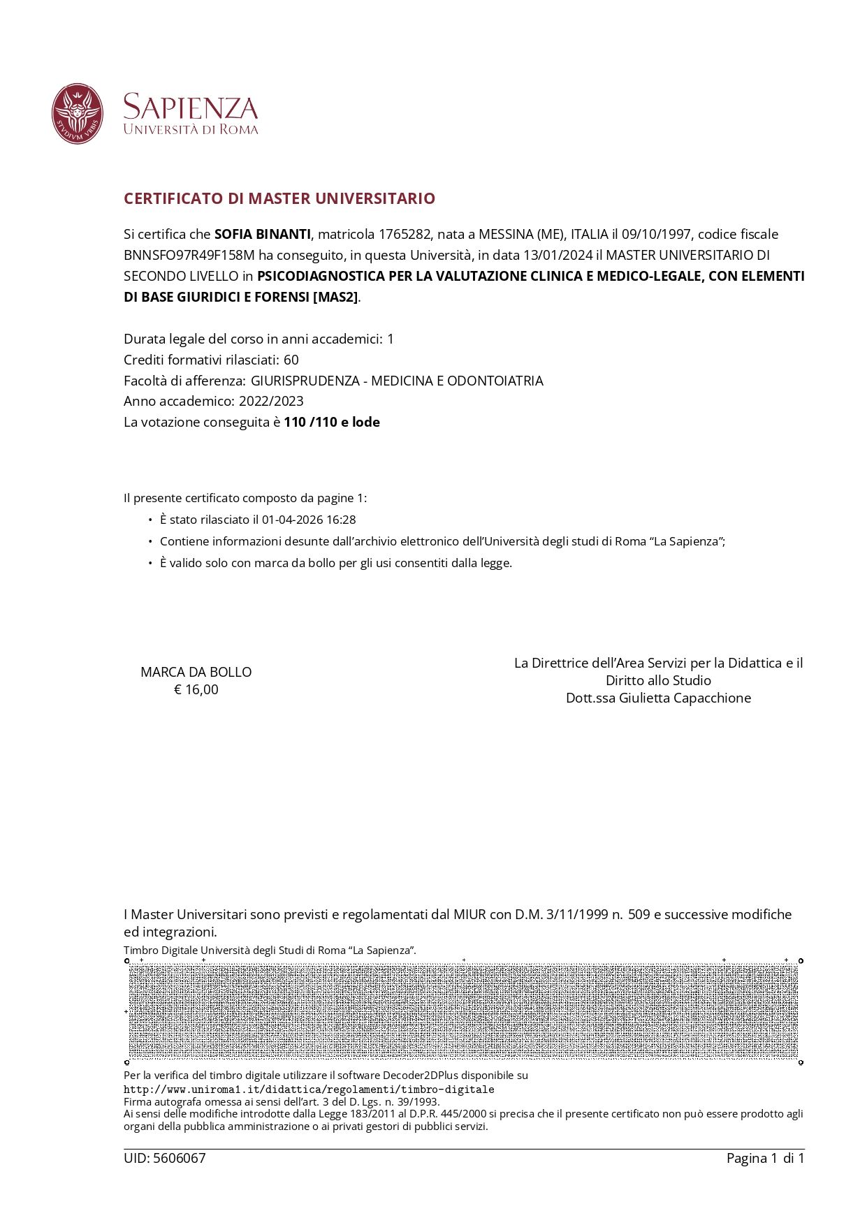 Dott.ssa Sofia Binanti