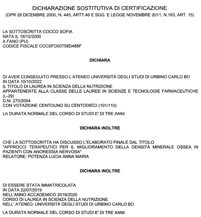 • Studio fisico - Dott.ssa Sofia Cocco • prima visita nutrizionale •