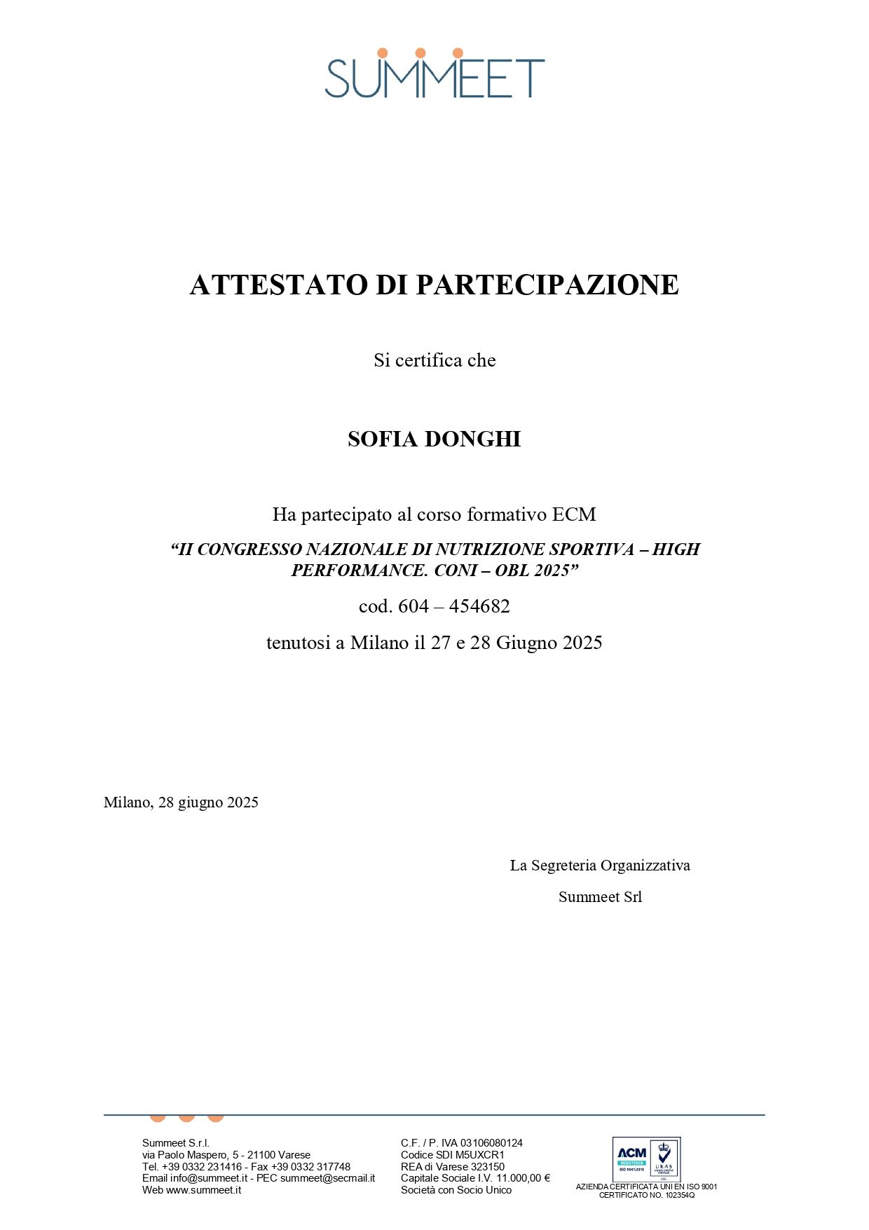 Durante la visita e anche lungo il percorso ho avuto modo di notare molta professionalità e passione.• Dott.ssa Sofia Donghi • visita nutrizionistica •