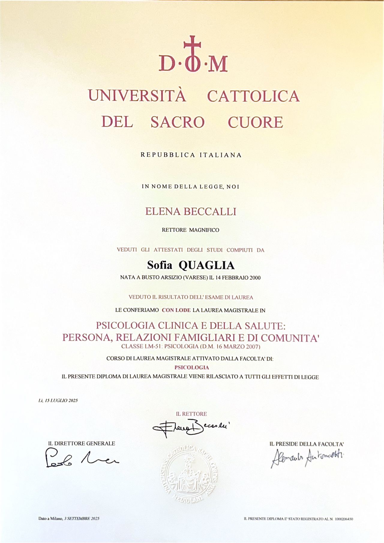 Hai avuto una visita con Dott.ssa Sofia Quaglia? Condividi quello che pensi. Grazie alla tua esperienza gli altri pazienti potranno scegliere il miglior dottore per loro.