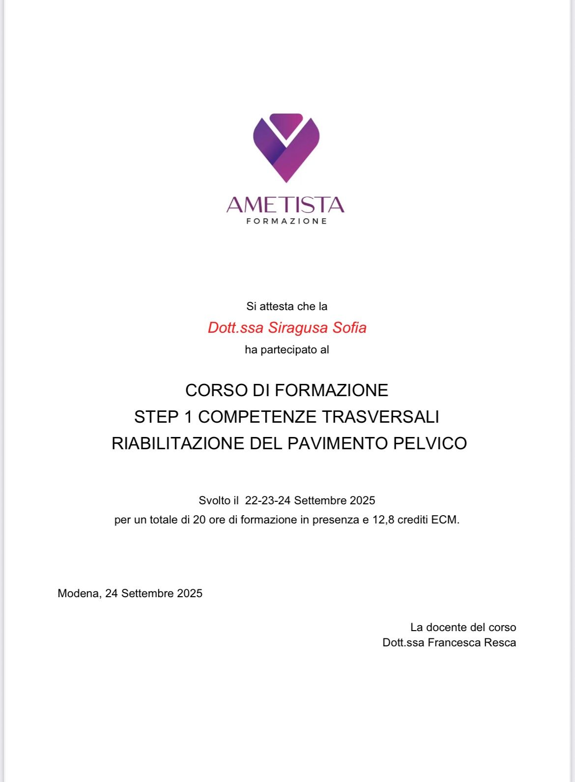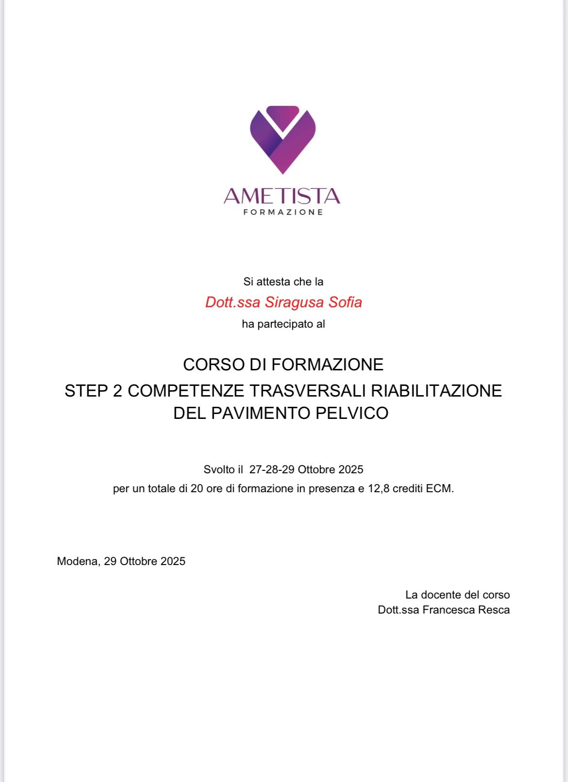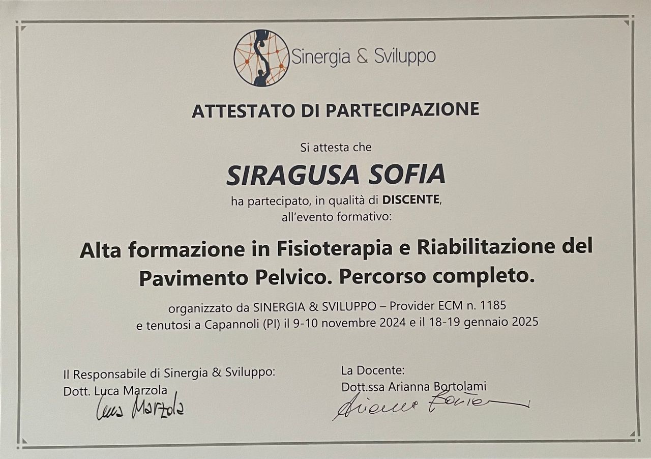 Mi sono laureata in Fisioterapia presso l'università degli studi di Siena nel 2002 con 110/110 e lode. Nel corso degli anni ho maturato una profonda esperienza in ambito riabilitativo, fino a dedicarmi in modo specifico alla riabilitazione del pavimento pelvico e al trattamento delle disfunzioni uro-ginecologiche e proctologiche. Ho approfondito le mie competenze attraverso corsi di formazione specialistici, tra cui il percorso PelvicSchool della Dott.ssa Bortolami e formazione con Ametista. Mi occupo di Prevenzione, Valutazione e Trattamento di problematiche come: incontinenza urinaria e fecale, prolasso degli organi pelvici, dolore pelvico cronico, disfunzioni sessuali femminili, preparazione e riabilitazione post-parto...