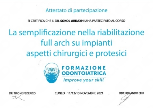 Il continuo aggiornamento ed il confronto costruttivo con i colleghi sono tra i miei obbiettivi, per arrivare a dare veramente un odontoiatria centrata sulla persona.