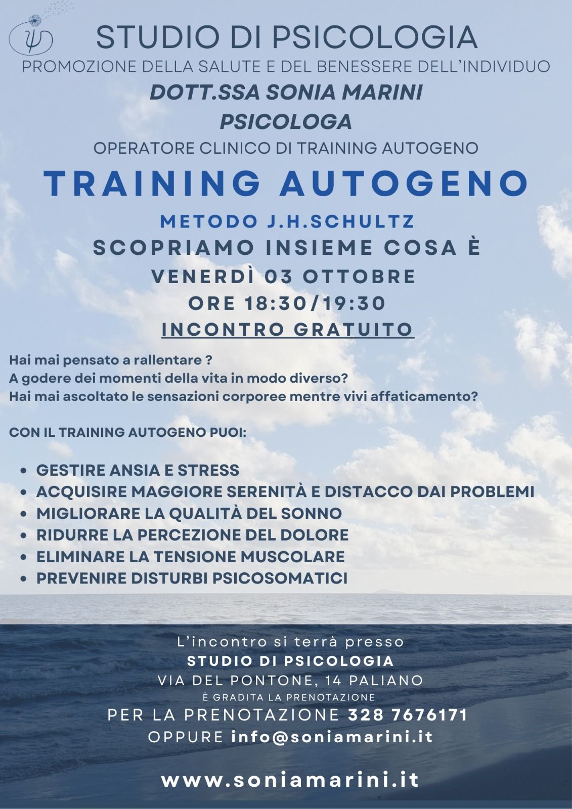 Il TRAINING AUTOGENO è una tecnica di rilassamento e di cambiamento.