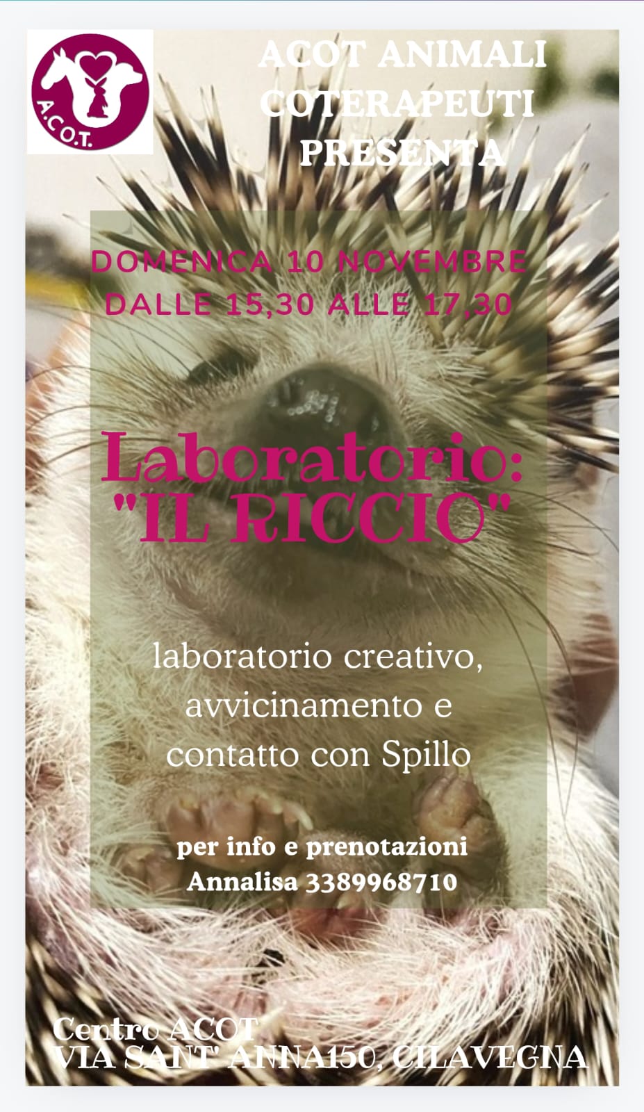 "IL RICCIO": Laboratorio creativo, avvicinanento e contatto con Spillo, riccio africano