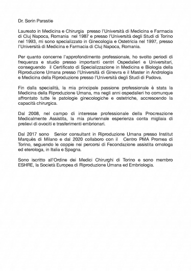 Ho avuto un'ottima esperienza con il Dott. Sorin Parastie. È un professionista competente e preparato, capace di spiegare chiaramente la mia diagnosi e le opzioni di trattamento disponibili. La sua empatia mi ha fatto sentire a mio agio, e ha sempre risposto a tutte le mie domande con disponibilità.