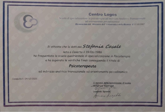 La Dr.ssa Casale ha manifestato sin dal primo colloquio una grande capacità di ascolto ed empatia. Con lei ho intrapreso un percorso che mi sta aiutando sempre a diventare resiliente e a pormi con positività ed ottimismo alla vita. Sono estremamente soddisfatta di essermi affidata a lei.