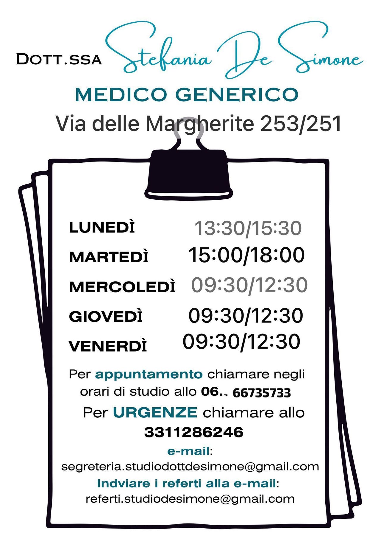 Cell 311286246 da utilizzare per le urgenze dal lunedi al venerdi escluso gli orari di studio .