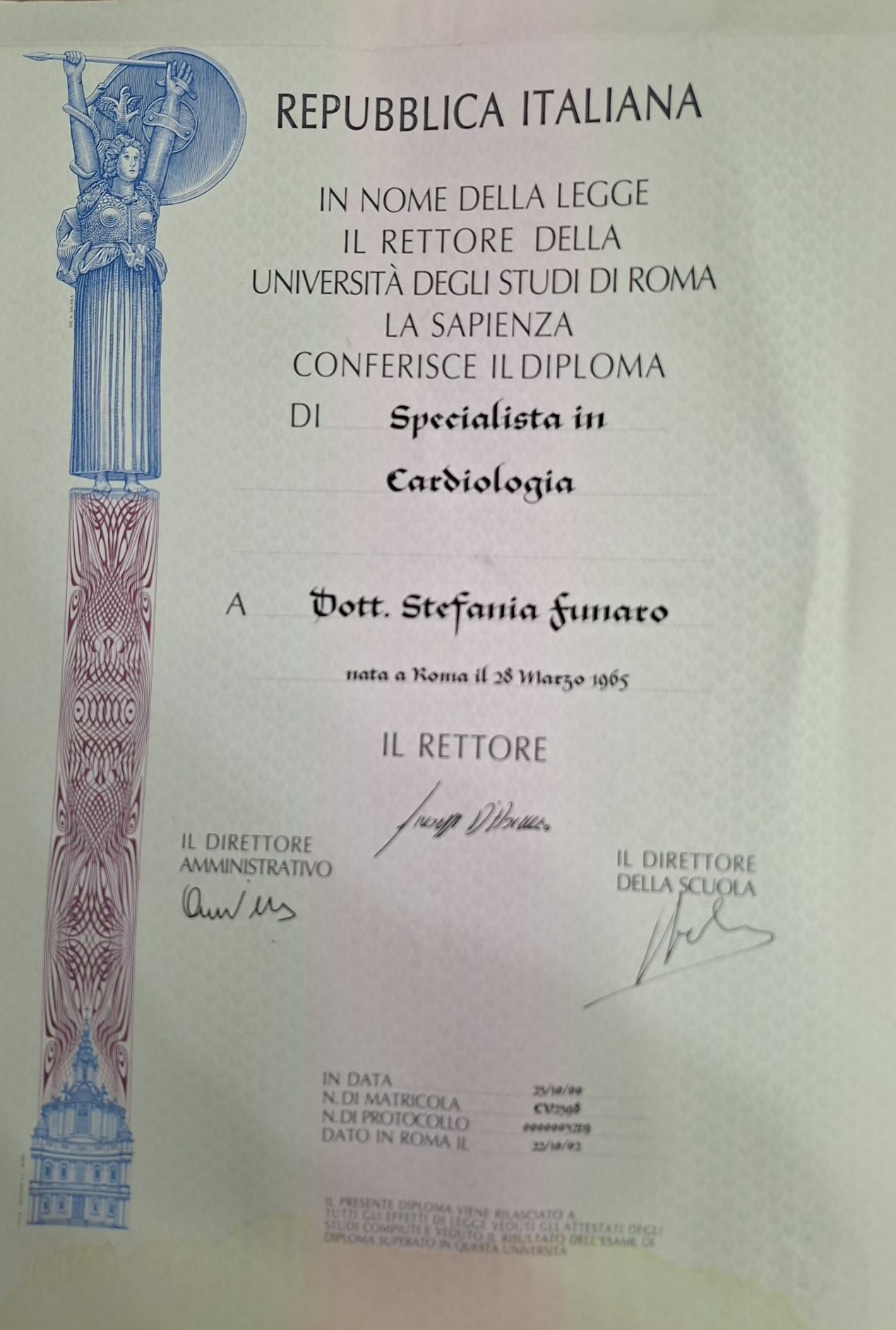Sono la Dott.ssa Stefania Funaro, cardiologa con una solida formazione accademica e una forte attenzione alla cura personalizzata di ogni paziente. Mi sono laureata con lode in Medicina e Chirurgia presso l’Università La Sapienza di Roma, dove ho successivamente conseguito la specializzazione in Cardiologia.