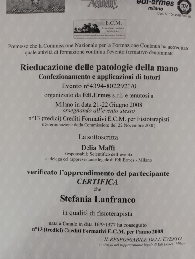 Attualmente sono una fisioterapista in libera professione. Master in linfologia conseguito all’Università di Padova.